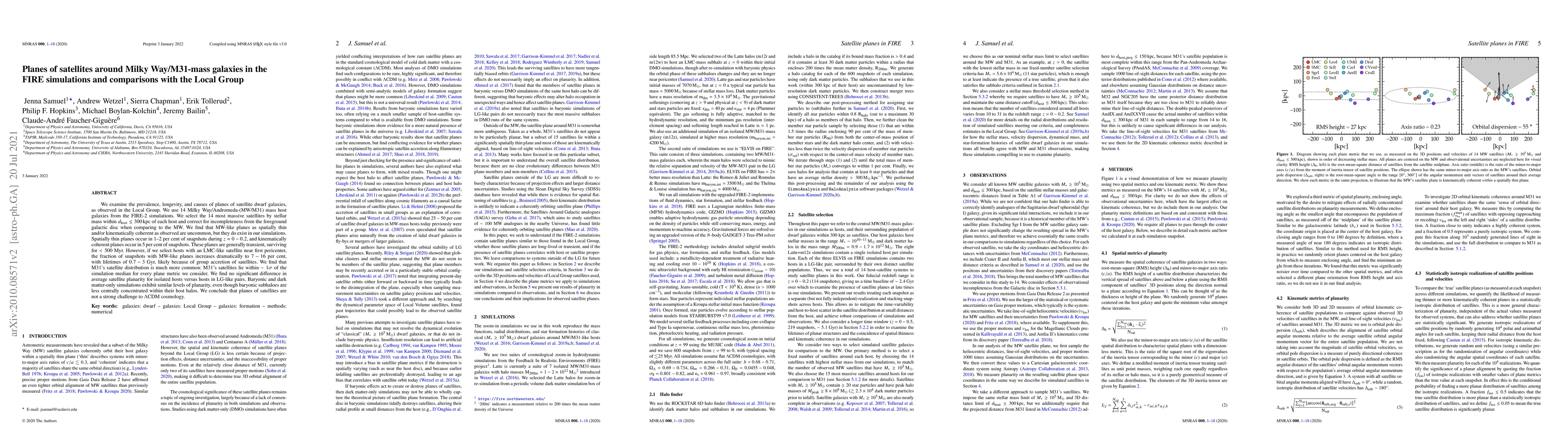The paper presents a detailed analysis of satellite planes using high-resolution cosmological simulations, offering a robust comparison between MW/M31-mass galaxies and the Local Group.