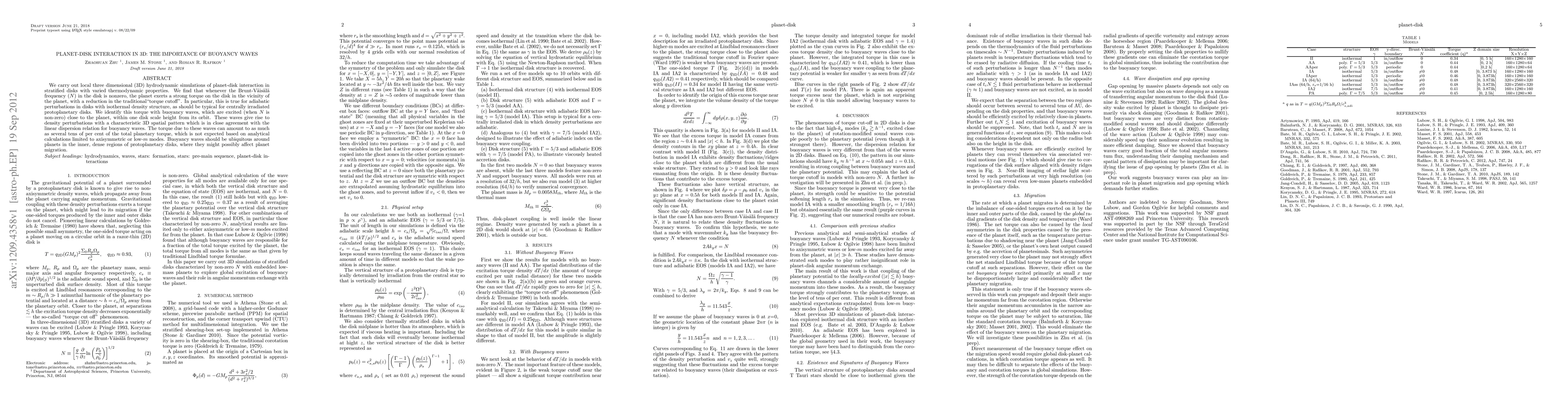 This paper investigates 3D hydrodynamic simulations of planet-disk interactions in stratified disks, revealing that buoyancy waves, excited by non-zero Brunt-Vaisala frequency, significantly enhance the planet's torque on the disk, challenging traditional torque cutoff models. These waves, prominent in dense, centrally irradiated disks, may impact planet migration.