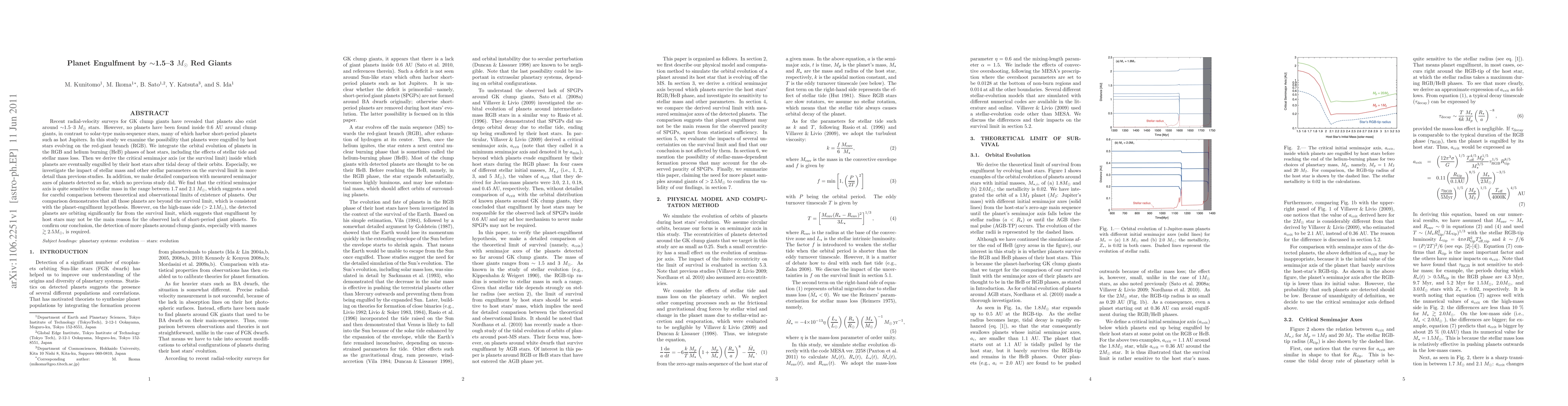 This study explores the engulfment of planets around red giants with masses of ~1.5-3 solar masses, finding that planets are unlikely to survive within 0.6 AU due to tidal decay. The critical semimajor axis for planet survival is highly sensitive to stellar mass, especially between 1.7 and 2.1 solar masses, suggesting that observed planets are beyond the engulfment limit, supporting the planet-engulfment hypothesis.