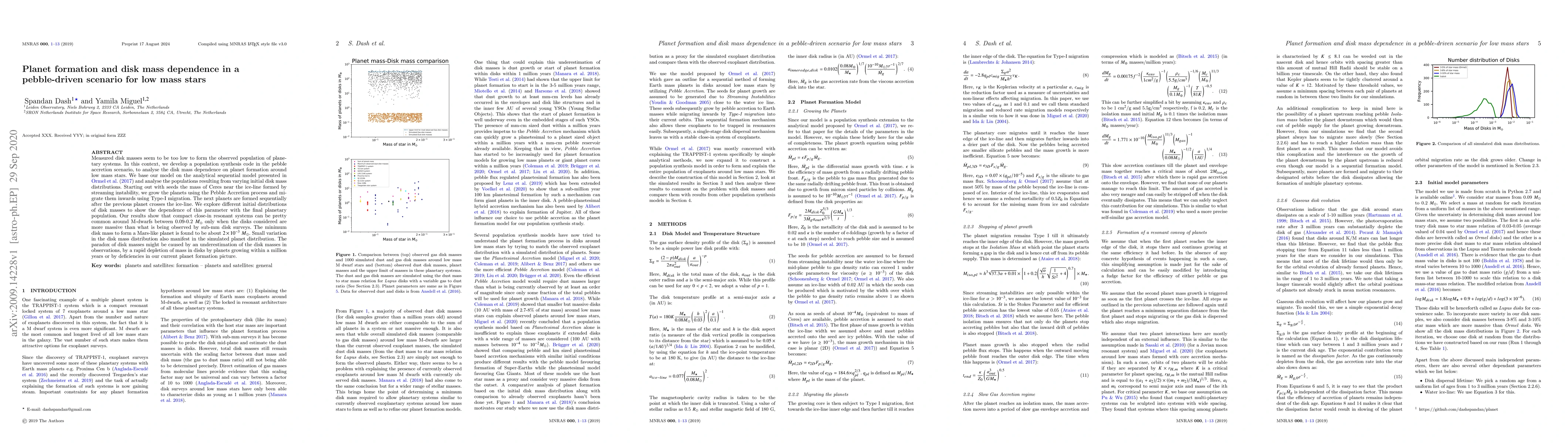 Measured disk masses seem to be too low to form the observed population of planetary systems. In this context, we develop a population synthesis code in the pebble accretion scenario, to analyse the disk mass dependence on planet formation around low mass stars. We base our model on the analytical sequential model presented in Ormel et al. 2017 and analyse the populations resulting from varying initial disk mass distributions. Starting out with seeds the mass of Ceres near the ice-line formed by streaming instability, we grow the planets using the Pebble Accretion process and migrate them inwards using Type-I migration. The next planets are formed sequentially after the previous planet crosses the ice-line. We explore different initial distributions of disk masses to show the dependence of this parameter with the final planetary population. Our results show that compact close-in resonant systems can be pretty common around M-dwarfs between $0.09-0.2$ $M_{\odot}$ only when the disks considered are more massive than what is being observed by sub-mm disk surveys. The minimum disk mass to form a Mars-like planet is found to be about $2 \times 10^{-3}$ $M_{\odot}$. Small variation in the disk mass distribution also manifest in the simulated planet distribution. The paradox of disk masses might be caused by an underestimation of the disk masses in observations, by a rapid depletion of mass in disks by planets growing within a million years or by deficiencies in our current planet formation picture.