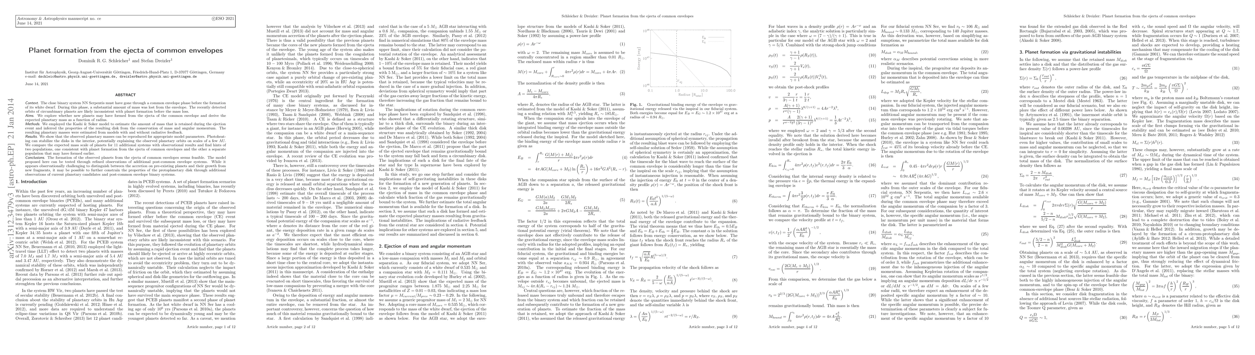 The close binary system NN Serpentis must have gone through a common envelope phase before the formation of its white dwarf. During this phase, a substantial amount of mass was lost from the envelope. The recently detected orbits of circumbinary planets are likely inconsistent with planet formation before the mass loss.We explore whether new planets may have formed from the ejecta of the common envelope and derive the expected planetary mass as a function of radius.We employed the Kashi & Soker model to estimate the amount of mass that is retained during the ejection event and inferred the properties of the resulting disk from the conservation of mass and angular momentum. The resulting planetary masses were estimated from models with and without radiative feedback. We show that the observed planetary masses can be reproduced for appropriate model parameters. Photoheating can stabilize the disks in the interior, potentially explaining the observed planetary orbits on scales of a few AU. We compare the expected mass scale of planets for 11 additional systems with observational results and find hints of two populations, one consistent with planet formation from the ejecta of common envelopes and the other a separate population that may have formed earlier. The formation of the observed planets from the ejecta of common envelopes seems feasible. The model proposed here can be tested through refined observations of additional post-common envelope systems. While it appears observationally challenging to distinguish between the accretion on pre-existing planets and their growth from new fragments, it may be possible to further constrain the properties of the protoplanetary disk through additional observations of current planetary candidates and post-common envelope binary systems.