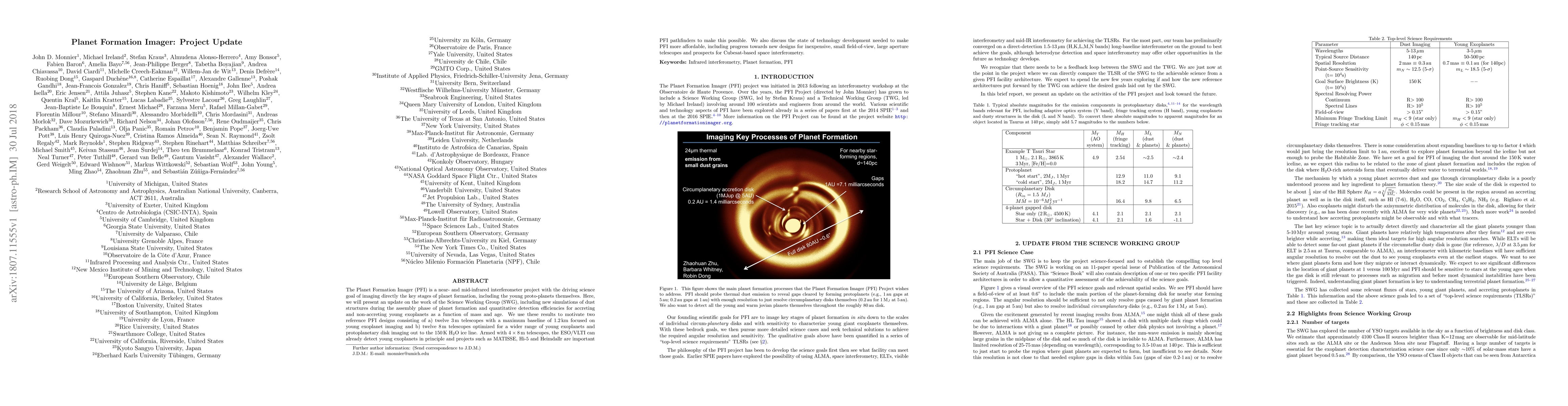 The Planet Formation Imager (PFI) aims to directly image the stages of planet formation using near- and mid-infrared interferometry. The latest update includes new simulations and detection efficiencies for young exoplanets, proposing two PFI designs: twelve 3m telescopes for focused imaging and twelve 8m telescopes for broader imaging capabilities.
