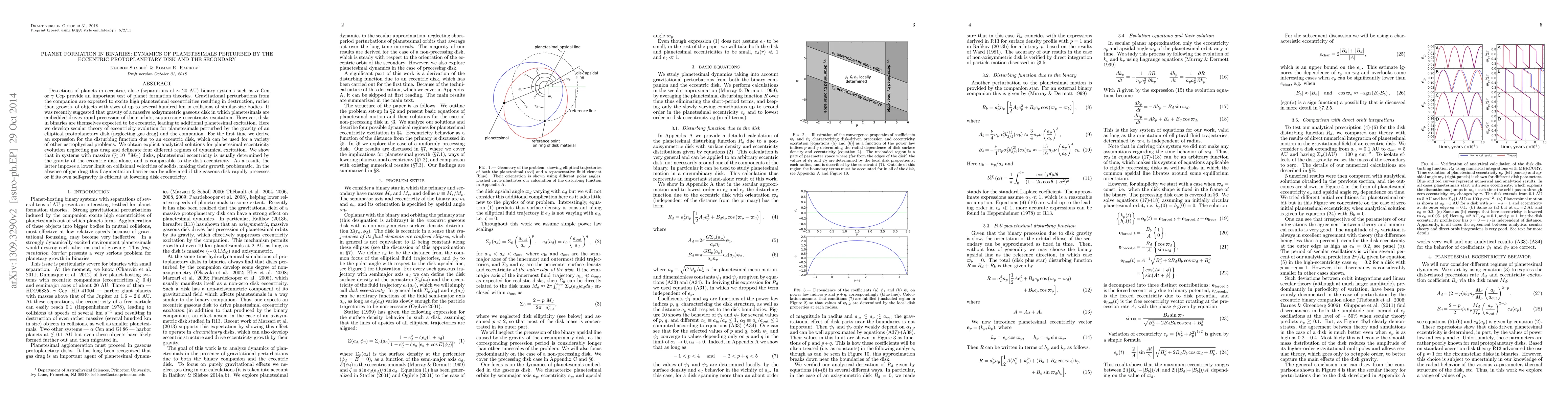 Detections of planets in eccentric, close (separations of ~20 AU) binary systems such as \alpha Cen or \gamma Cep provide an important test of planet formation theories. Gravitational perturbations from the companion are expected to excite high planetesimal eccentricities resulting in destruction, rather than growth, of objects with sizes of up to several hundred km in collisions of similar-size bodies. It was recently suggested that gravity of a massive axisymmetric gaseous disk in which planetesimals are embedded drives rapid precession of their orbits, suppressing eccentricity excitation. However, disks in binaries are themselves expected to be eccentric, leading to additional planetesimal excitation. Here we develop secular theory of eccentricity evolution for planetesimals perturbed by the gravity of an elliptical protoplanetary disk (neglecting gas drag) and the companion. For the first time we derive an expression for the disturbing function due to an eccentric disk, which can be used for a variety of other astrophysical problems. We obtain explicit analytical solutions for planetesimal eccentricity evolution and delineate four different regimes of dynamical excitation. We show that in systems with massive (>10^{-2}M_Sun) disks, planetesimal eccentricity is usually determined by the gravity of the eccentric disk alone, and is comparable to the disk eccentricity. As a result, the latter imposes a lower limit on collisional velocities of solids, making their growth problematic. This fragmentation barrier can be removed if the gaseous disk rapidly precesses or if its own self-gravity is efficient at lowering disk eccentricity.
