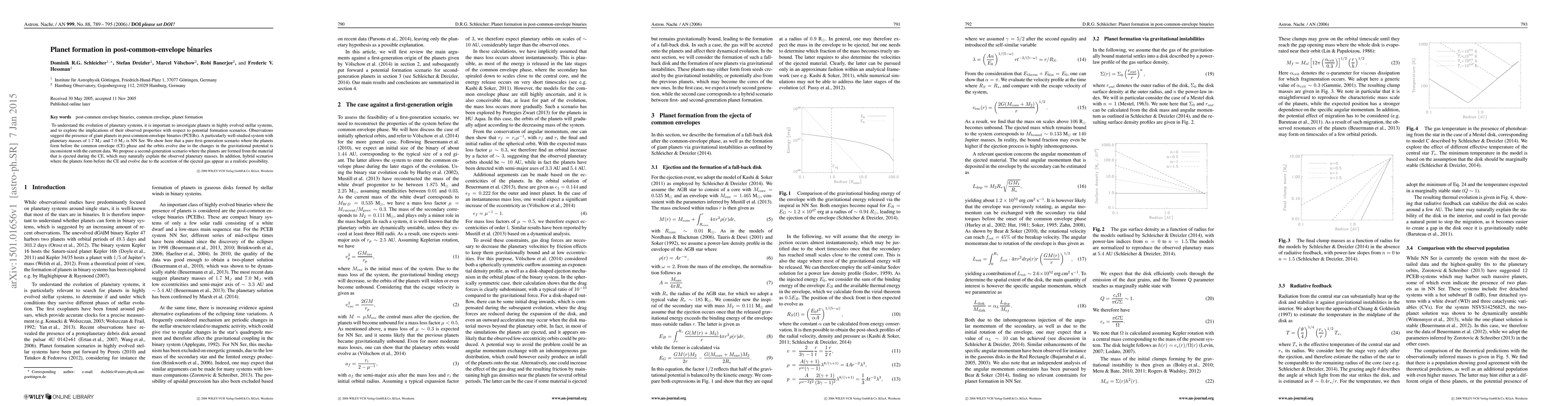 To understand the evolution of planetary systems, it is important to investigate planets in highly evolved stellar systems, and to explore the implications of their observed properties with respect to potential formation scenarios. Observations suggest the presence of giant planets in post-common-envelope binaries (PCEBs). A particularly well-studied system with planetary masses of 1.7 M_J and 7.0 M_J is NN Ser. We show here that a pure first-generation scenario where the planets form before the common envelope (CE) phase and the orbits evolve due to the changes in the gravitational potential is inconsistent with the current data. We propose a second-generation scenario where the planets are formed from the material that is ejected during the CE, which may naturally explain the observed planetary masses. In addition, hybrid scenarios where the planets form before the CE and evolve due to the accretion of the ejected gas appear as a realistic possibility.