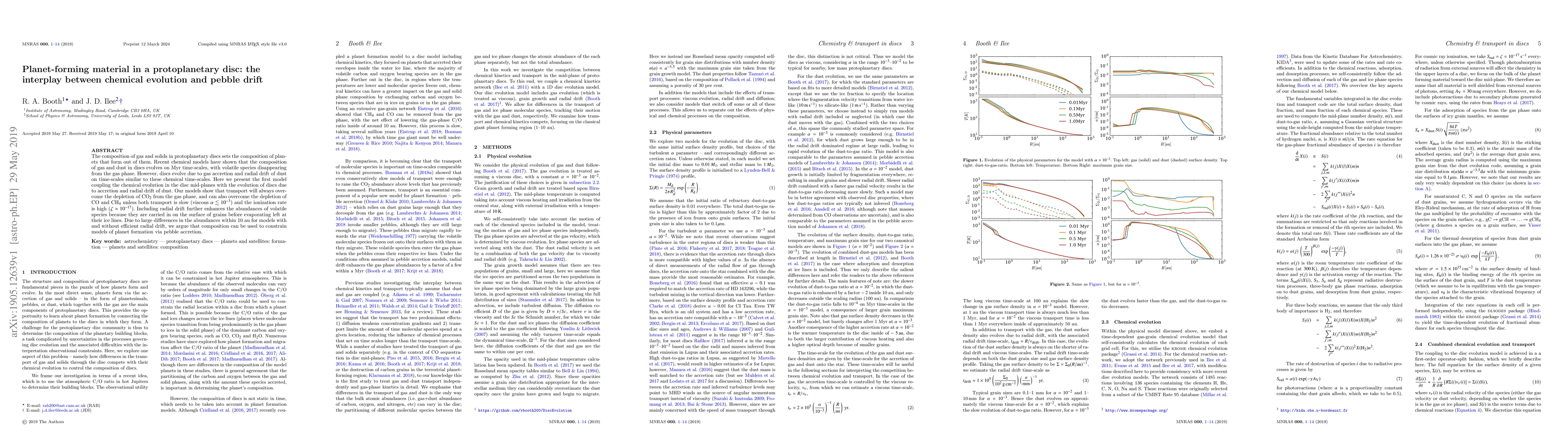 This paper models the interplay between chemical evolution and the radial drift of dust in protoplanetary discs, showing that transport can maintain volatile species despite chemical depletion. It emphasizes that efficient radial drift enhances volatile abundances, suggesting that disc composition can help constrain planet formation models.