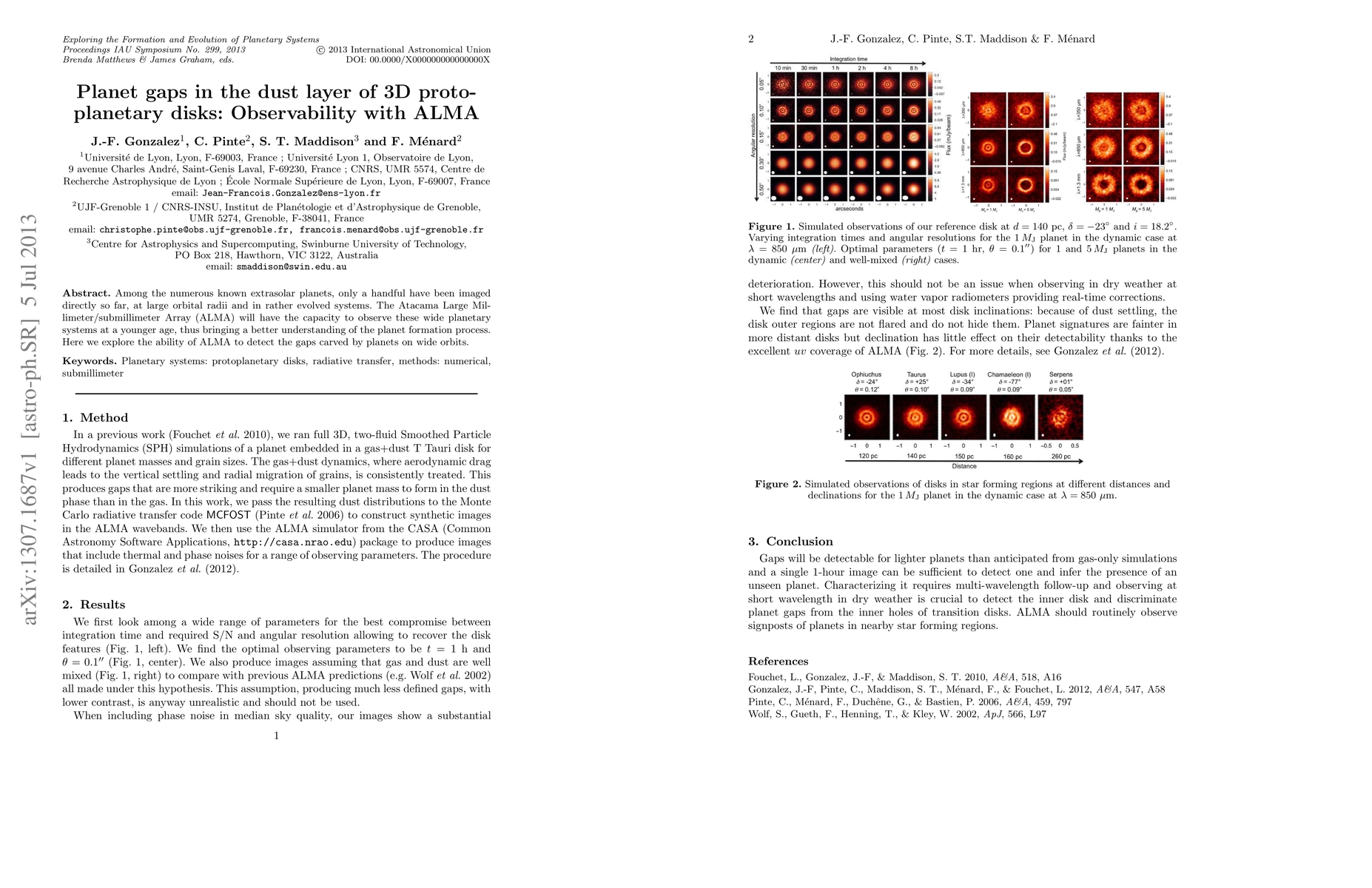 Among the numerous known extrasolar planets, only a handful have been imaged directly so far, at large orbital radii and in rather evolved systems. The Atacama Large Millimeter/submillimeter Array (ALMA) will have the capacity to observe these wide planetary systems at a younger age, thus bringing a better understanding of the planet formation process. Here we explore the ability of ALMA to detect the gaps carved by planets on wide orbits.