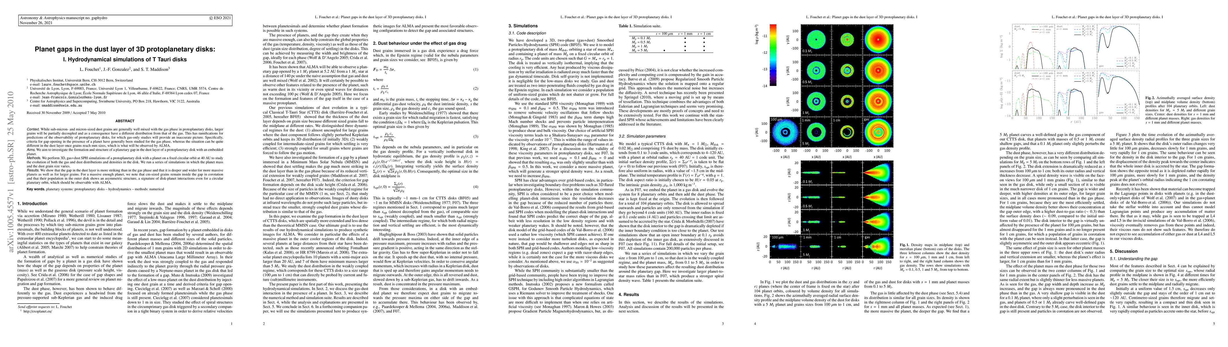 This paper investigates the formation and structure of planetary gaps in the dust layer of a protoplanetary disk using 3D hydrodynamical simulations. The study reveals that dust gaps are more pronounced than gas gaps, especially for larger grains and more massive planets, with observable asymmetric structures in the outer disk.