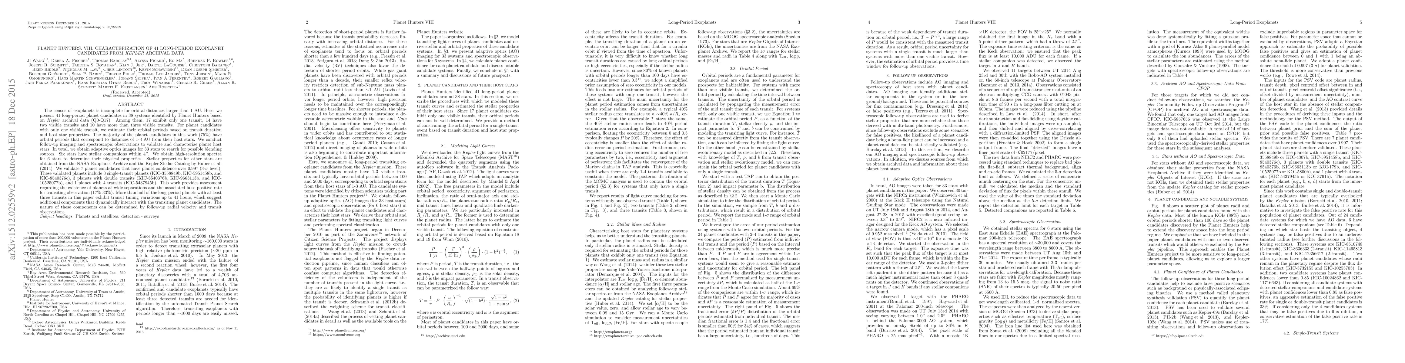This paper identifies and characterizes 41 long-period exoplanet candidates from Kepler data, validating 7 with high confidence. The majority of these candidates have orbital periods between 1-3 AU, with some showing transit timing variations suggesting additional celestial bodies.