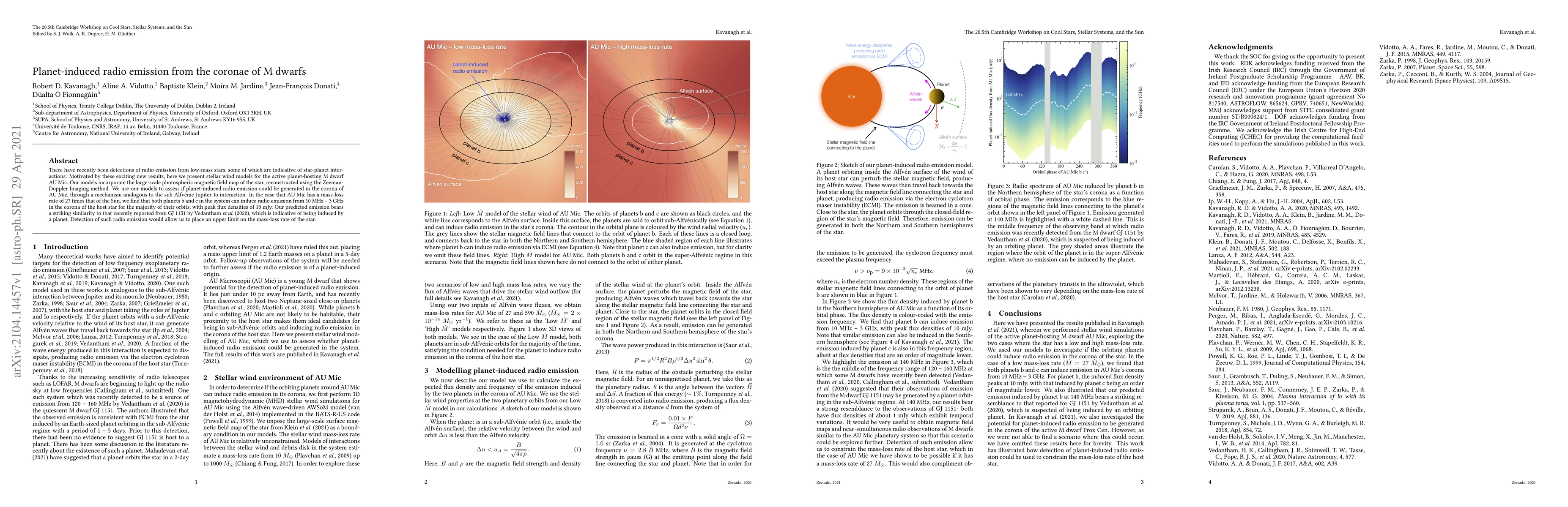 There have recently been detections of radio emission from low-mass stars, some of which are indicative of star-planet interactions. Motivated by these exciting new results, here we present stellar wind models for the active planet-hosting M dwarf AU Mic. Our models incorporate the large-scale photospheric magnetic field map of the star, reconstructed using the Zeeman-Doppler Imaging method. We use our models to assess if planet-induced radio emission could be generated in the corona of AU Mic, through a mechanism analogous to the sub-Alfv\'enic Jupiter-Io interaction. In the case that AU Mic has a mass-loss rate of 27 times that of the Sun, we find that both planets b and c in the system can induce radio emission from 10 MHz to 3 GHz in the corona of the host star for the majority of their orbits, with peak flux densities of 10 mJy. Our predicted emission bears a striking similarity to that recently reported from GJ 1151 by Vedantham et al. (2020), which is indicative of being induced by a planet. Detection of such radio emission would allow us to place an upper limit on the mass-loss rate of the star.