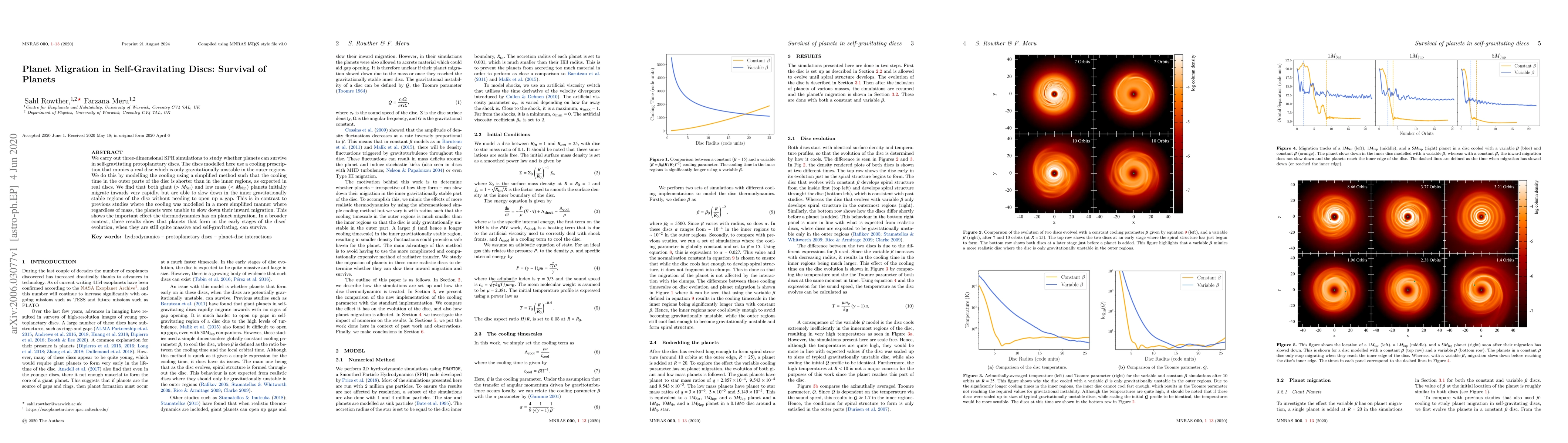 This paper uses 3D SPH simulations to demonstrate that planets can survive in self-gravitating protoplanetary discs, especially when the cooling model mimics real discs. Unlike previous studies, it shows that planets of various masses can slow their inward migration in the gravitationally stable inner regions.