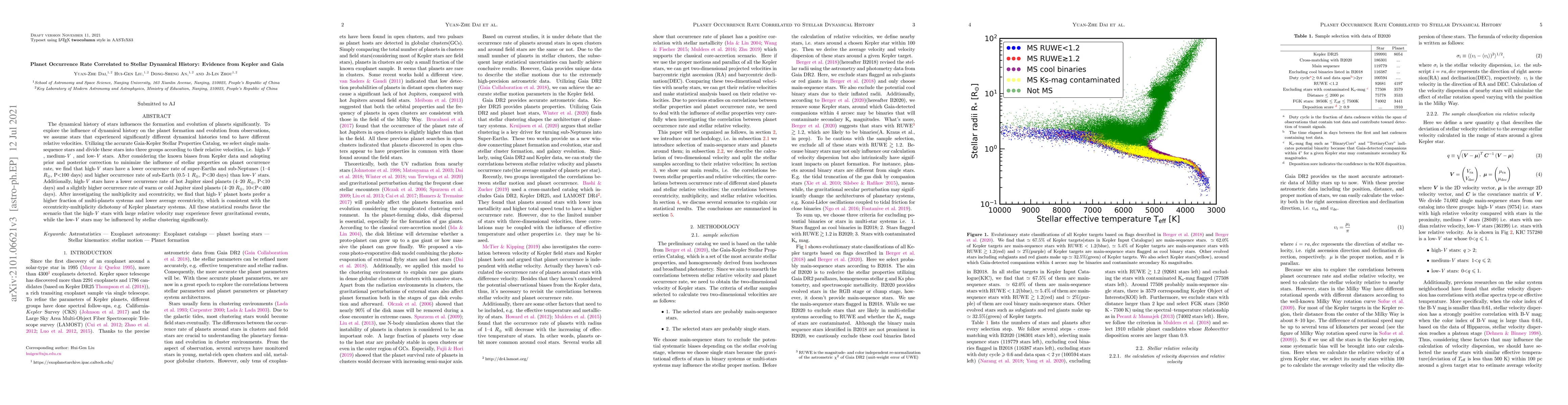 This study investigates how the dynamical history of stars affects planet occurrence rates using data from Kepler and Gaia. High-velocity stars show lower rates of super-Earths and hot Jupiters, but higher rates of sub-Earths and warm/cold Jupiters, suggesting fewer gravitational interactions compared to low-velocity stars.