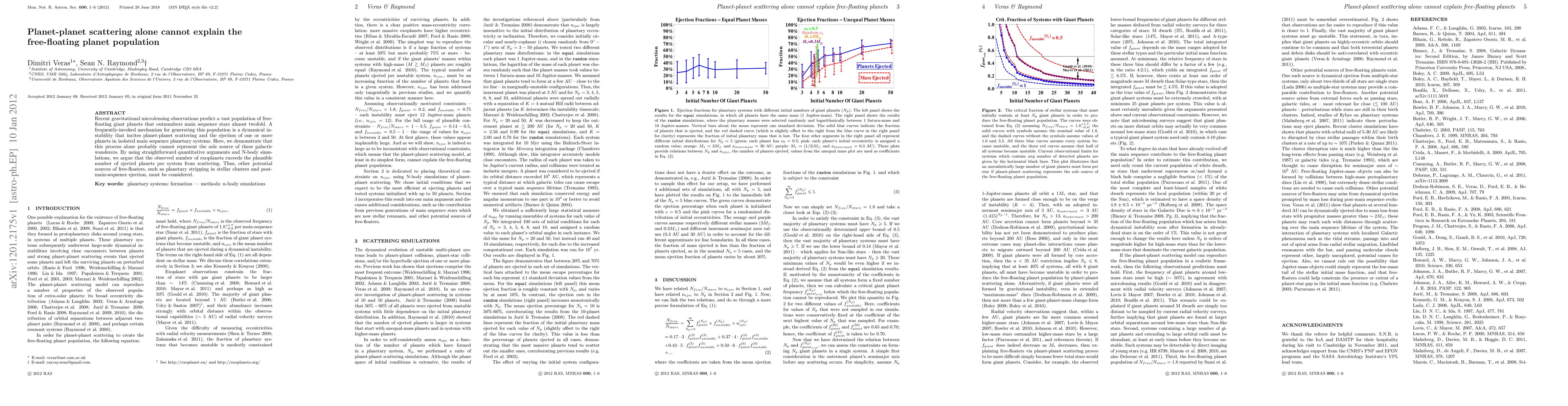 The paper presents a quantitative analysis of planet-planet scattering using N-body simulations, demonstrating that this process alone cannot account for the observed free-floating planet population.