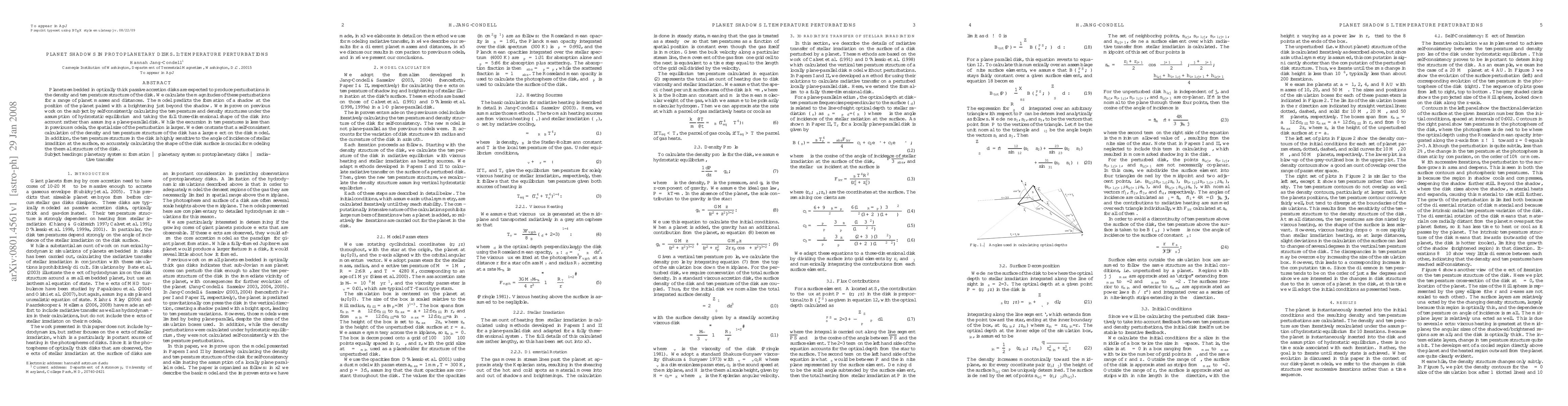Planets embedded in optically thick passive accretion disks are expected to produce perturbations in the density and temperature structure of the disk. We calculate the magnitudes of these perturbations for a range of planet masses and distances. The model predicts the formation of a shadow at the position of the planet paired with a brightening just beyond the shadow. We improve on previous work on the subject by self-consistently calculating the temperature and density structures under the assumption of hydrostatic equilibrium and taking the full three-dimensional shape of the disk into account rather than assuming a plane-parallel disk. While the excursion in temperatures is less than in previous models, the spatial size of the perturbation is larger. We demonstrate that a self-consistent calculation of the density and temperature structure of the disk has a large effect on the disk model. In addition, the temperature structure in the disk is highly sensitive to the angle of incidence of stellar irradition at the surface, so accurately calculating the shape of the disk surface is crucial for modeling the thermal structure of the disk.