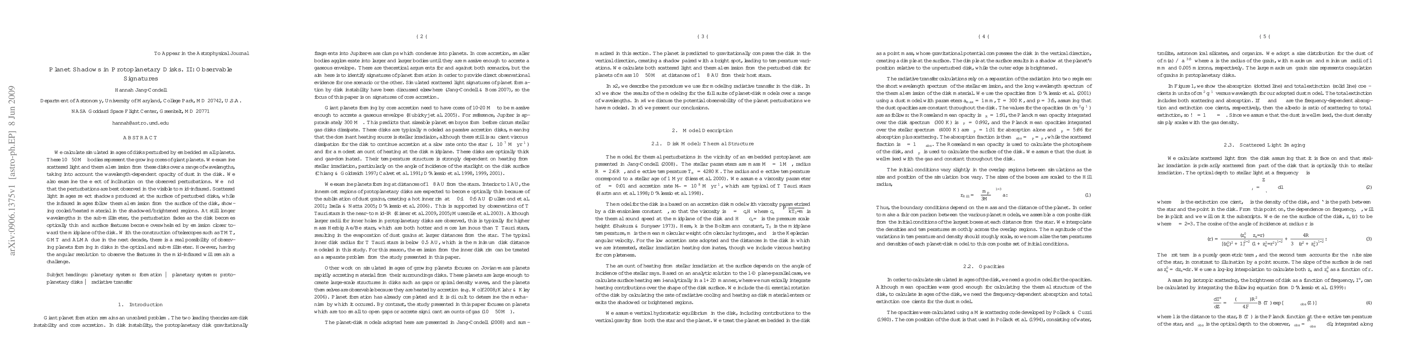We calculate simulated images of disks perturbed by embedded small planets. These 10-50 M_Earth bodies represent the growing cores of giant planets. We examine scattered light and thermal emission from these disks over a range of wavelengths, taking into account the wavelength-dependent opacity of dust in the disk. We also examine the effect of inclination on the observed perturbations. We find that the perturbations are best observed in the visible to mid-infrared. Scattered light images reflect shadows produced at the surface of perturbed disks, while the infrared images follow thermal emission from the surface of the disk, showing cooled/heated material in the shadowed/brightened regions. At still longer wavelengths in the sub-millimeter, the perturbation fades as the disk becomes optically thin and surface features become overwhelmed by emission closer toward the midplane of the disk. With the construction of telescopes such as TMT, GMT and ALMA due in the next decade, there is a real possibility of observing planets forming in disks in the optical and sub-millimeter. However, having the angular resolution to observe the features in the mid-infrared will remain a challenge.
