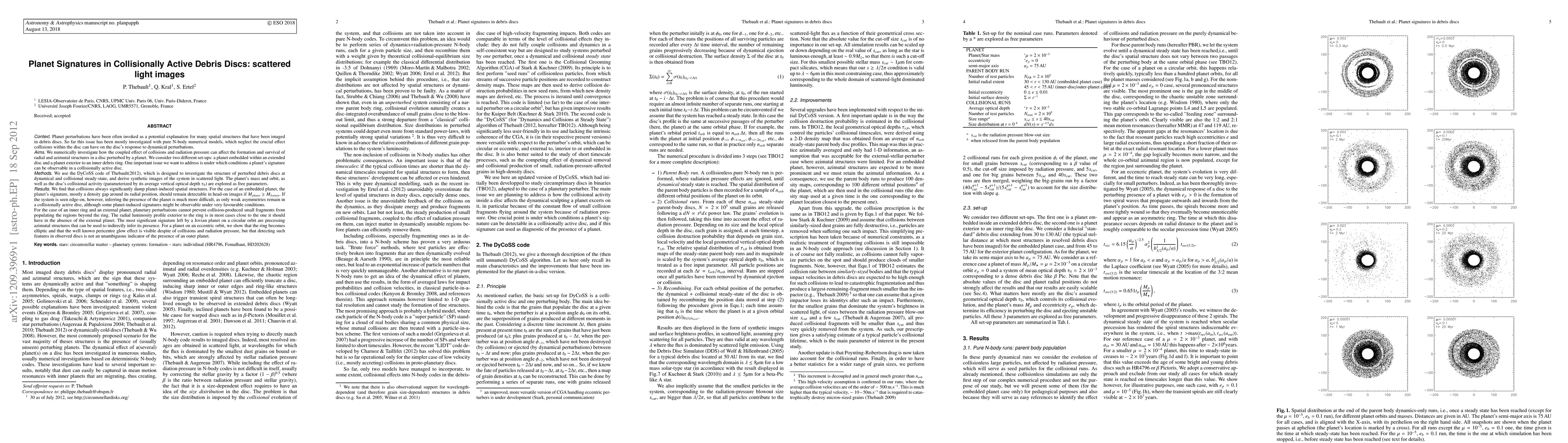 Planet perturbations are often invoked as a potential explanation for many spatial structures that have been imaged in debris discs. So far this issue has been mostly investigated with collisionless N-body numerical models. We numerically investigate how the coupled effect of collisions and radiation pressure can affect the formation and survival of radial and azimutal structures in a disc perturbed by a planet. We consider two set-ups: a planet embedded within an extended disc and a planet exterior to an inner debris ring. We use the DyCoSS code of Thebault(2012) and derive synthetic images of the system in scattered light. The planet's mass and orbit, as well as the disc's collisional activity are explored as free parameters. We find that collisions always significantly damp planet-induced structures. For the case of an embedded planet, the planet's signature, mostly a density gap around its radial position, should remain detectable in head-on images if M_planet > M_Saturn. If the system is seen edge-on, however, inferring the presence of the planet is much more difficult, although some planet-induced signatures might be observable under favourable conditions. For the inner-ring/external-planet case, planetary perturbations cannot prevent collision-produced small fragments from populating the regions beyond the ring: The radial luminosity profile exterior to the ring is close to the one it should have in the absence of the planet. However, a Jovian planet on a circular orbit leaves precessing azimutal structures that can be used to indirectly infer its presence. For a planet on an eccentric orbit, the ring is elliptic and the pericentre glow effect is visible despite of collisions and radiation pressure, but detecting such features in real discs is not an unambiguous indicator of the presence of an outer planet.