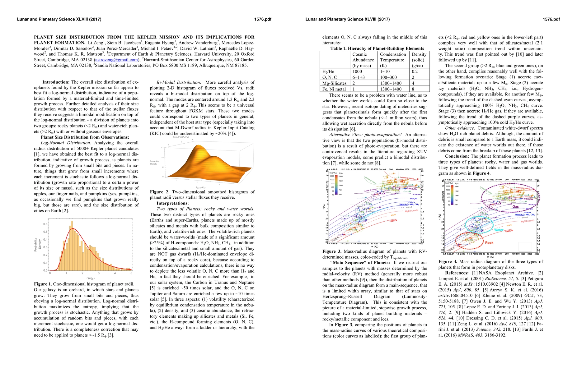 Summary: The Kepler Mission reveals a bimodal distribution of exoplanet sizes, distinguishing rocky planets under 2 Earth radii from water-rich planets over 2 Earth radii, suggesting distinct formation pathways for these two groups.
