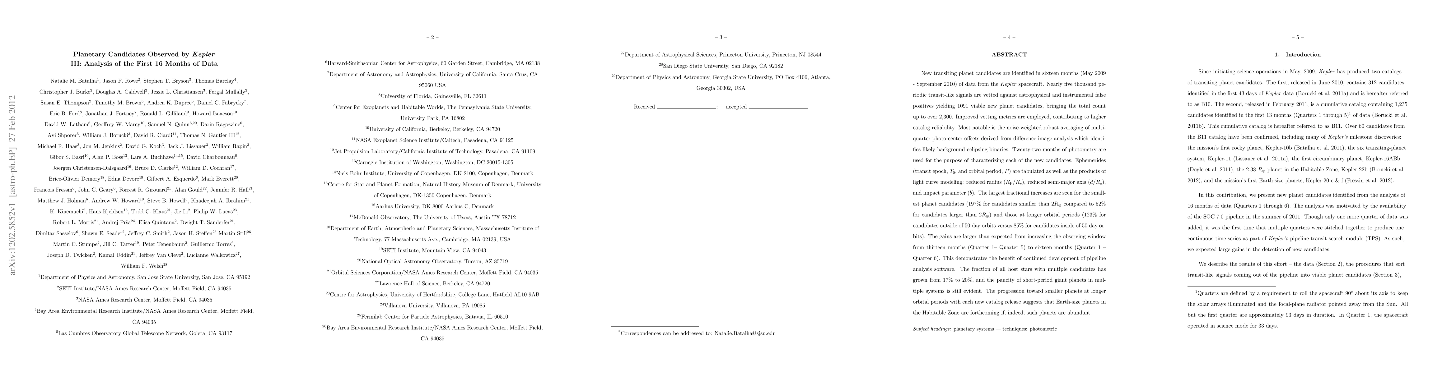 New transiting planet candidates are identified in sixteen months (May 2009 - September 2010) of data from the Kepler spacecraft. Nearly five thousand periodic transit-like signals are vetted against astrophysical and instrumental false positives yielding 1,091 viable new planet candidates, bringing the total count up to over 2,300. Improved vetting metrics are employed, contributing to higher catalog reliability. Most notable is the noise-weighted robust averaging of multi-quarter photo-center offsets derived from difference image analysis which identifies likely background eclipsing binaries. Twenty-two months of photometry are used for the purpose of characterizing each of the new candidates. Ephemerides (transit epoch, T_0, and orbital period, P) are tabulated as well as the products of light curve modeling: reduced radius (Rp/R*), reduced semi-major axis (d/R*), and impact parameter (b). The largest fractional increases are seen for the smallest planet candidates (197% for candidates smaller than 2Re compared to 52% for candidates larger than 2Re) and those at longer orbital periods (123% for candidates outside of 50-day orbits versus 85% for candidates inside of 50-day orbits). The gains are larger than expected from increasing the observing window from thirteen months (Quarter 1-- Quarter 5) to sixteen months (Quarter 1 -- Quarter 6). This demonstrates the benefit of continued development of pipeline analysis software. The fraction of all host stars with multiple candidates has grown from 17% to 20%, and the paucity of short-period giant planets in multiple systems is still evident. The progression toward smaller planets at longer orbital periods with each new catalog release suggests that Earth-size planets in the Habitable Zone are forthcoming if, indeed, such planets are abundant.