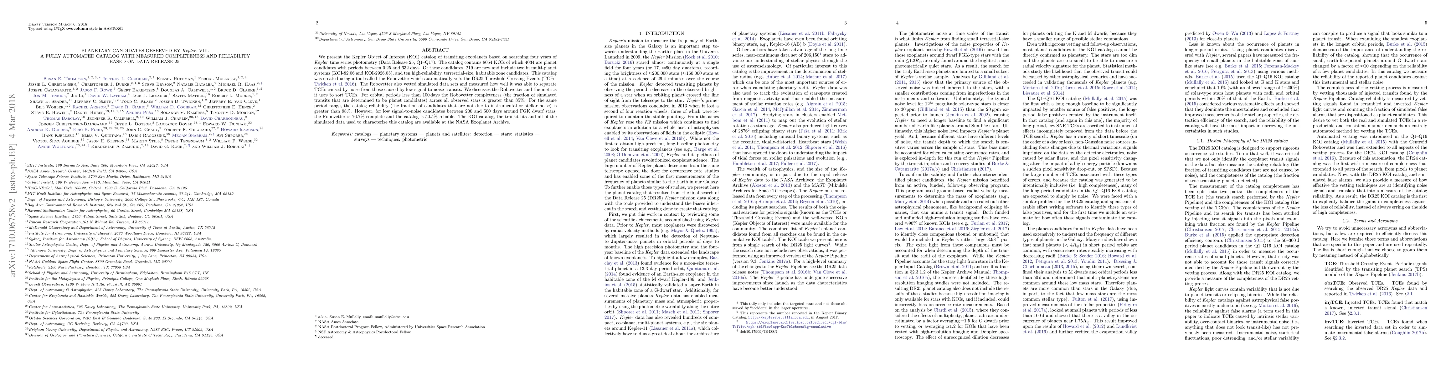The paper presents an automated catalog of 8054 Kepler Object of Interest (KOI) candidates, including 4034 planet candidates, based on four years of Kepler photometry. The Robovetter tool was used to vet these candidates, achieving high completeness and reliability for short-period candidates but lower performance for low signal-to-noise candidates in longer periods.