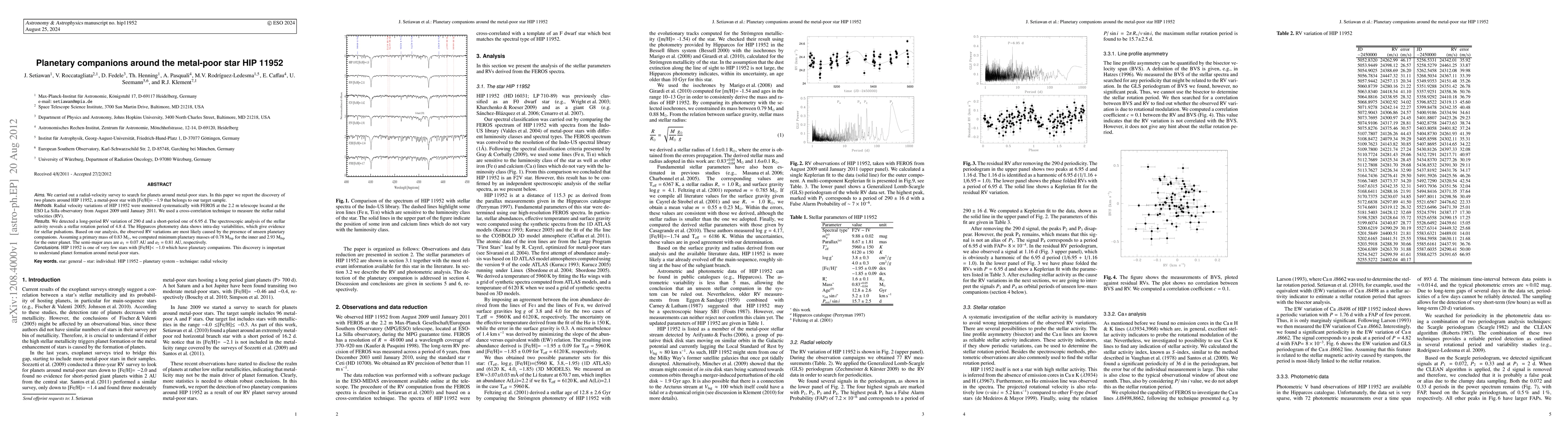 The study presented a detailed analysis of radial velocity variations to detect and characterize planets around a metal-poor star, employing cross-correlation techniques and Keplerian modeling.