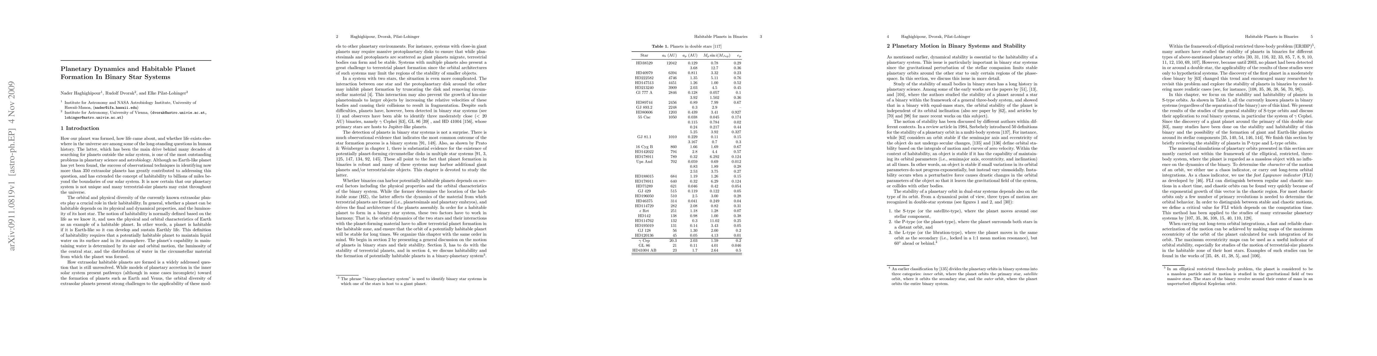 This paper explores the conditions necessary for the formation of habitable planets in binary star systems, focusing on the interplay between the orbital dynamics of the stars and the stability of terrestrial planets within the habitable zone. It examines the stability of planetary orbits and the formation of planets from planetesimals and planetary embryos in such systems.