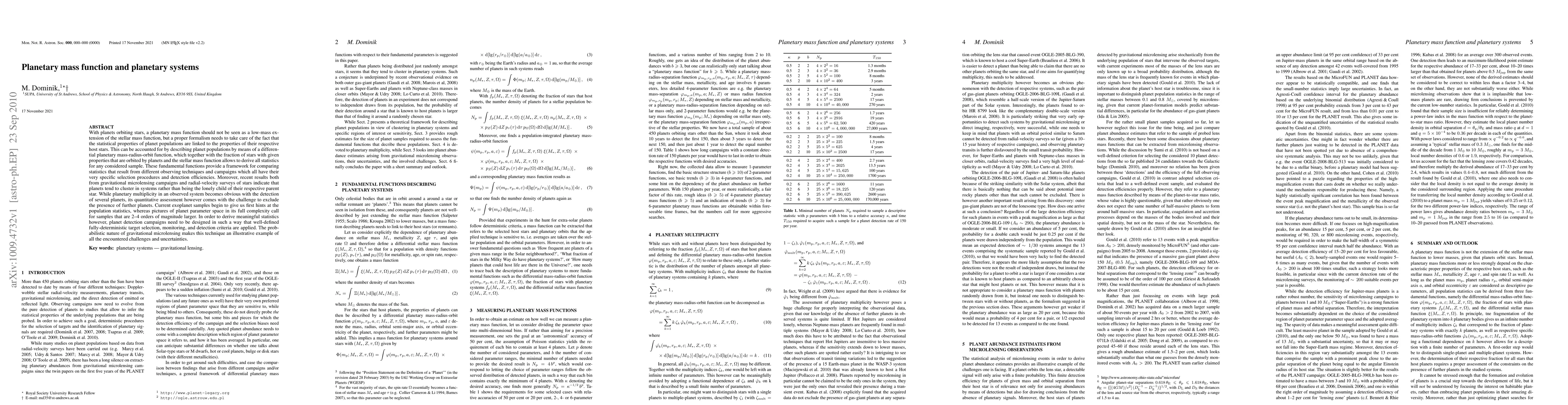 With planets orbiting stars, a planetary mass function should not be seen as a low-mass extension of the stellar mass function, but a proper formalism needs to take care of the fact that the statistical properties of planet populations are linked to the properties of their respective host stars. This can be accounted for by describing planet populations by means of a differential planetary mass-radius-orbit function, which together with the fraction of stars with given properties that are orbited by planets and the stellar mass function allows to derive all statistics for any considered sample. These fundamental functions provide a framework for comparing statistics that result from different observing techniques and campaigns which all have their very specific selection procedures and detection efficiencies. Moreover, recent results both from gravitational microlensing campaigns and radial-velocity surveys of stars indicate that planets tend to cluster in systems rather than being the lonely child of their respective parent star. While planetary multiplicity in an observed system becomes obvious with the detection of several planets, its quantitative assessment however comes with the challenge to exclude the presence of further planets. Current exoplanet samples begin to give us first hints at the population statistics, whereas pictures of planet parameter space in its full complexity call for samples that are 2-4 orders of magnitude larger. In order to derive meaningful statistics however, planet detection campaigns need to be designed in such a way that well-defined fully-deterministic target selection, monitoring, and detection criteria are applied. The probabilistic nature of gravitational microlensing makes this technique an illustrative example of all the encountered challenges and uncertainties.