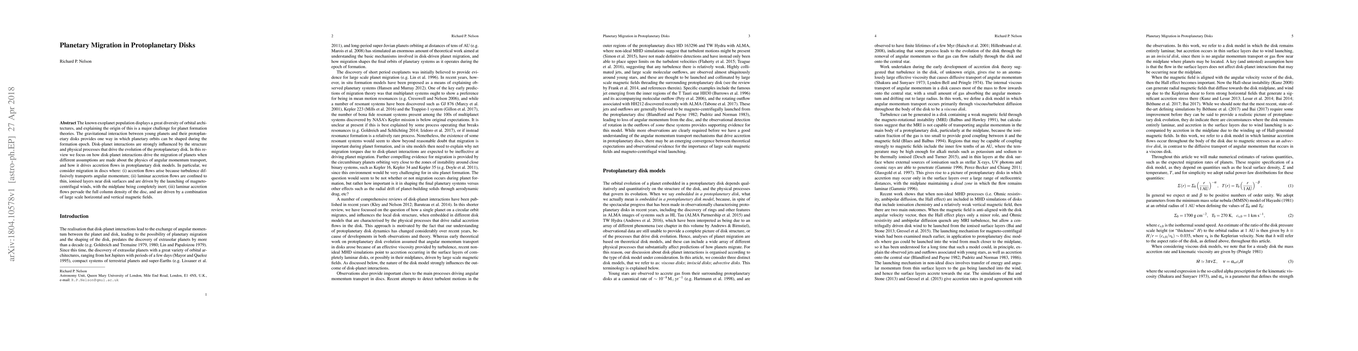 This review explores the mechanisms of planetary migration in protoplanetary disks under various assumptions about angular momentum transport and accretion flows, focusing on turbulence-driven, magneto-centrifugal wind-driven, and vertically pervasive magnetic field-driven models.