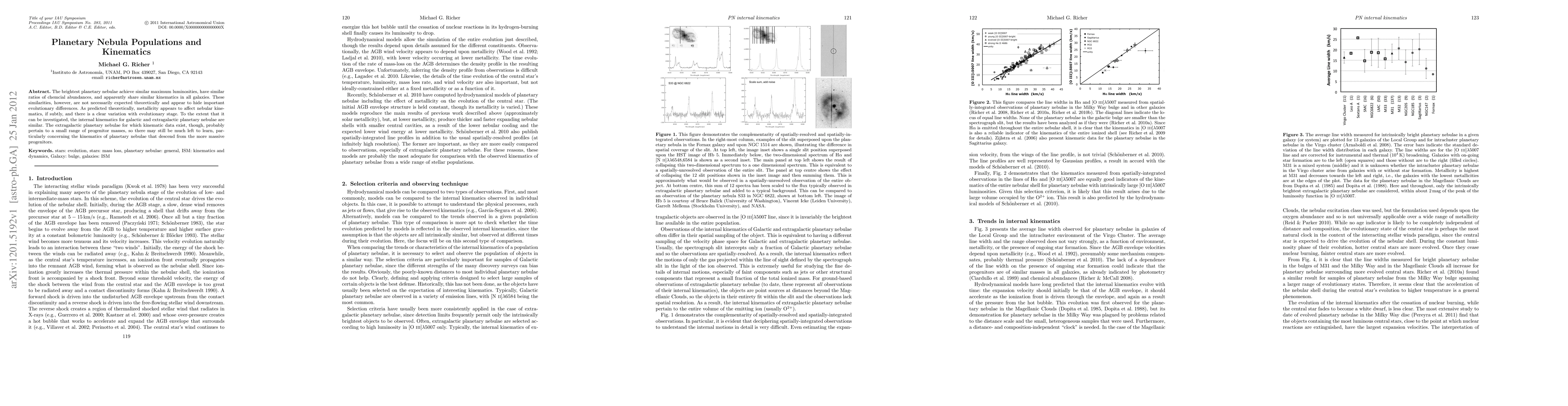 The brightest planetary nebulae achieve similar maximum luminosities, have similar ratios of chemcial abundances, and apparently share similar kinematics in all galaxies. These similarities, however, are not necessarily expected theoretically and appear to hide important evolutionary differences. As predicted theoretically, metallicity appears to affect nebular kinematics, if subtly, and there is a clear variation with evolutionary stage. To the extent that it can be investigated, the internal kinematics for galactic and extragalactic planetary nebulae are similar. The extragalactic planetary nebulae for which kinematic data exist, though, probably pertain to a small range of progenitor masses, so there may still be much left to learn, particularly concerning the kinematics of planetary nebulae that descend from the more massive progenitors.
