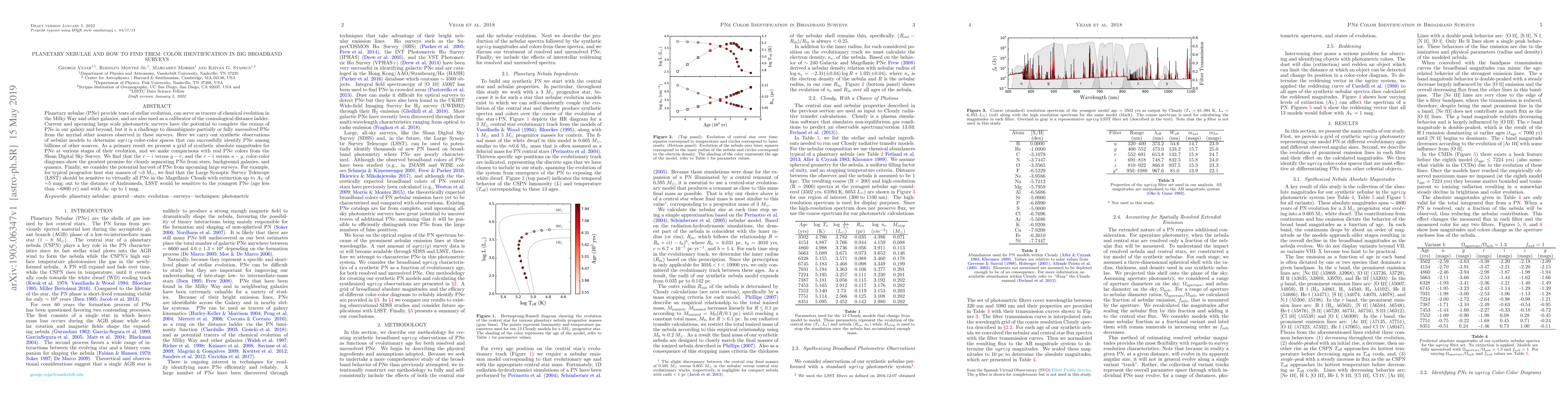 Researchers used synthetic observations to identify planetary nebulae in large-scale surveys, finding that specific color-color diagrams can distinguish PNe from other objects, and predicted the detection potential of future surveys like LSST.