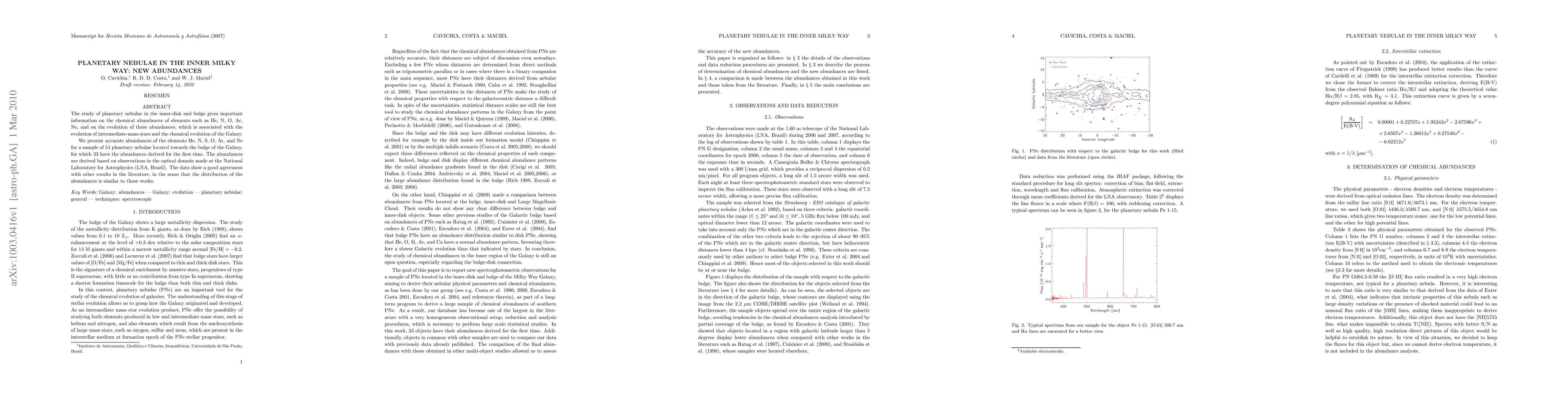 The study of planetary nebulae in the inner-disk and bulge gives important information on the chemical abundances of elements such as He, N, O, Ar, Ne, and on the evolution of these abundances, which is associated with the evolution of intermediate-mass stars and the chemical evolution of the Galaxy. We present accurate abundances of the elements He, N, S, O, Ar, and Ne for a sample of 54 planetary nebulae located towards the bulge of the Galaxy, for which 33 have the abundances derived for the first time. The abundances are derived based on observations in the optical domain made at the National Laboratory for Astrophysics (LNA, Brazil). The data show a good agreement with other results in the literature, in the sense that the distribution of the abundances is similar to those works.