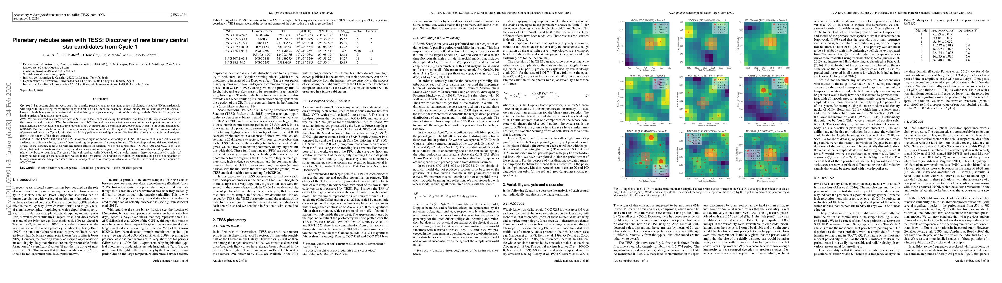 The TESS satellite discovered periodic variability in 7 of 8 planetary nebulas, suggesting the presence of a companion star, with constraints on possible mass and orbital characteristics.