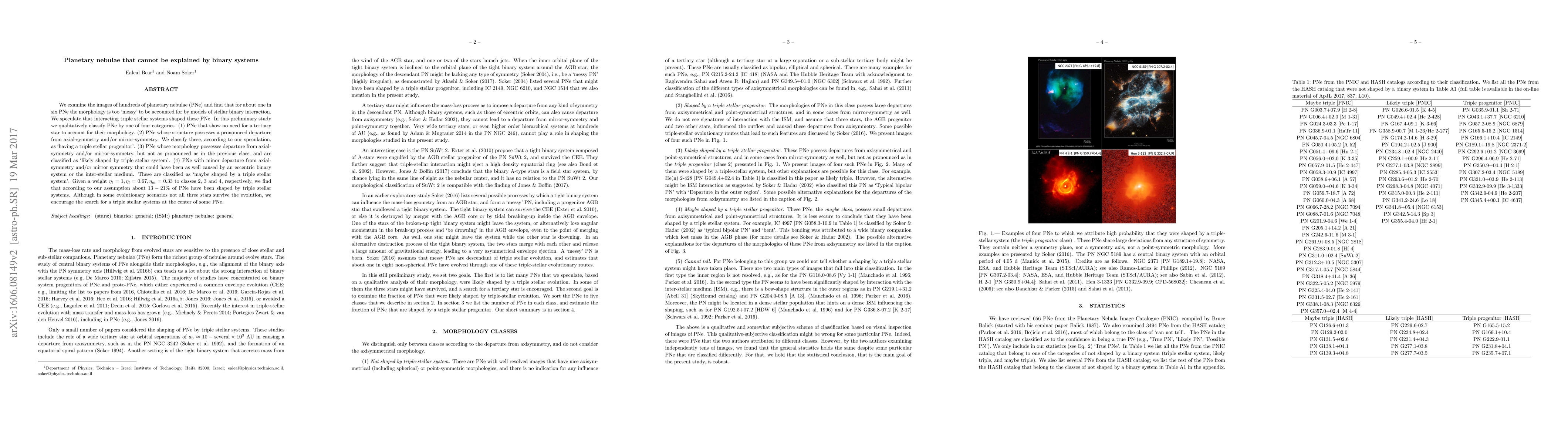 We examine the images of hundreds of planetary nebulae (PNe) and find that for about one in six PNe the morphology is too `messy' to be accounted for by models of stellar binary interaction. We speculate that interacting triple stellar systems shaped these PNe. In this preliminary study we qualitatively classify PNe by one of four categories. (1) PNe that show no need for a tertiary star to account for their morphology. (2) PNe whose structure possesses a pronounced departure from axial-symmetry and/or mirror-symmetry. We classify these, according to our speculation, as `having a triple stellar progenitor'. (3) PNe whose morphology possesses departure from axial-symmetry and/or mirror-symmetry, but not as pronounced as in the previous class, and are classified as `likely shaped by triple stellar system'. (4) PNe with minor departure from axial-symmetry and/or mirror symmetry that could have been as well caused by an eccentric binary system or the inter-stellar medium. These are classified as `maybe shaped by a triple stellar system'. Given a weight eta_t=1, eta_l=0.67, eta_m=0.33 to classes 2, 3 and 4, respectively, we find that according to our assumption about 13 - 21% of PNe have been shaped by triple stellar systems. Although in some evolutionary scenarios not all three stars survive the evolution, we encourage the search for a triple stellar systems at the center of some PNe.