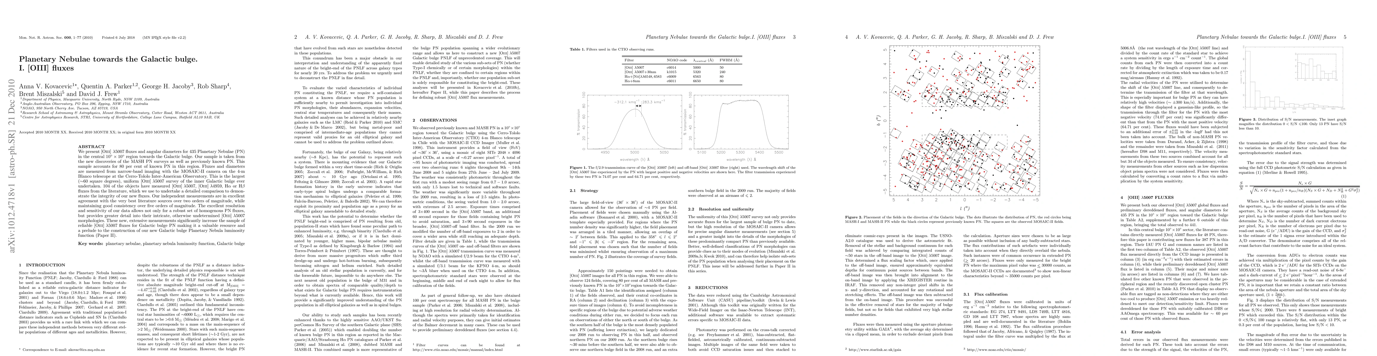 We present [OIII]{\lambda}5007 fluxes and angular diameters for 435 Planetary Nebulae (PN) in the central 10' x 10' region towards the Galactic bulge. Our sample is taken from the new discoveries of the MASH PN surveys as well as previously known PN. This sample accounts for 80% of known PN in this region. Fluxes and diameters are measured from narrow-band imaging with the MOSAIC-II camera on the 4-m Blanco telescope at the Cerro-Tololo Inter-American Observatory. This is the largest (~60 square degrees), uniform [OIII]{\lambda}5007 survey of the inner Galactic bulge ever undertaken. 104 of the objects have measured [OIII]{\lambda}5007, [OIII]{\lambda}4959, H{\alpha} or H{\beta} fluxes from the literature, which we use to undertake a detailed comparison to demonstrate the integrity of our new fluxes. Our independent measurements are in excellent agreement with the very best literature sources over two orders of magnitude, while maintaining good consistency over five orders of magnitude. The excellent resolution and sensitivity of our data allows not only for a robust set of homogenous PN fluxes, but provides greater detail into their intricate, otherwise undetermined [OIII]{\lambda}5007 morphologies. These new, extensive measurements significantly increase the sample of reliable [OIII]{\lambda}5007 fluxes for Galactic bulge PN making it a valuable resource and a prelude to the construction of our new Galactic bulge Planetary Nebula luminosity function (Paper II).