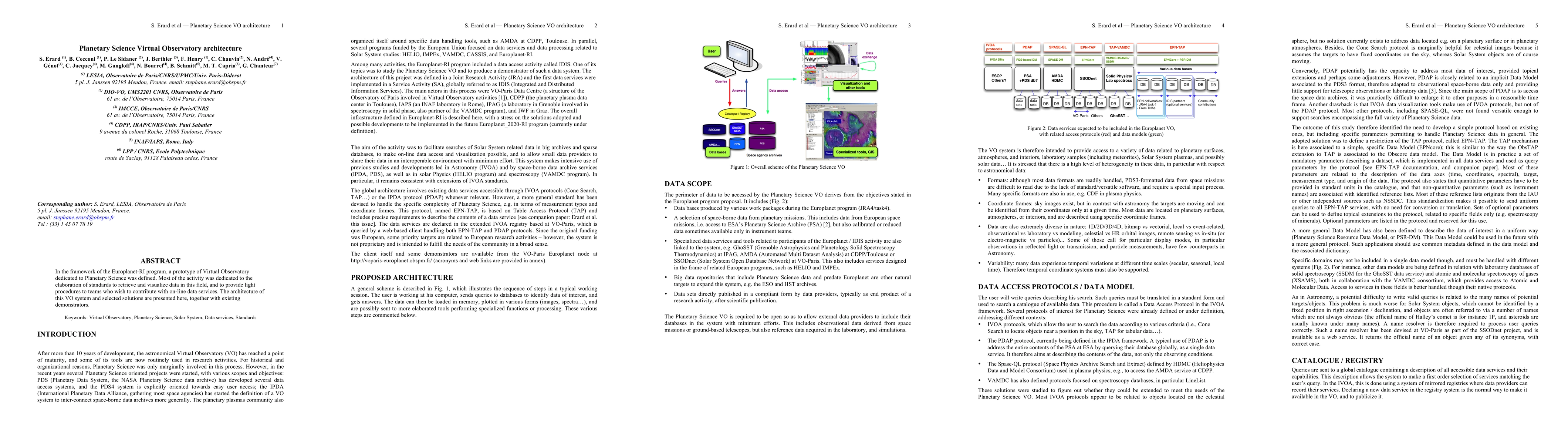 In the framework of the Europlanet-RI program, a prototype of Virtual Observatory dedicated to Planetary Science was defined. Most of the activity was dedicated to the elaboration of standards to retrieve and visualize data in this field, and to provide light procedures to teams who wish to contribute with on-line data services. The architecture of this VO system and selected solutions are presented here, together with existing demonstrators.