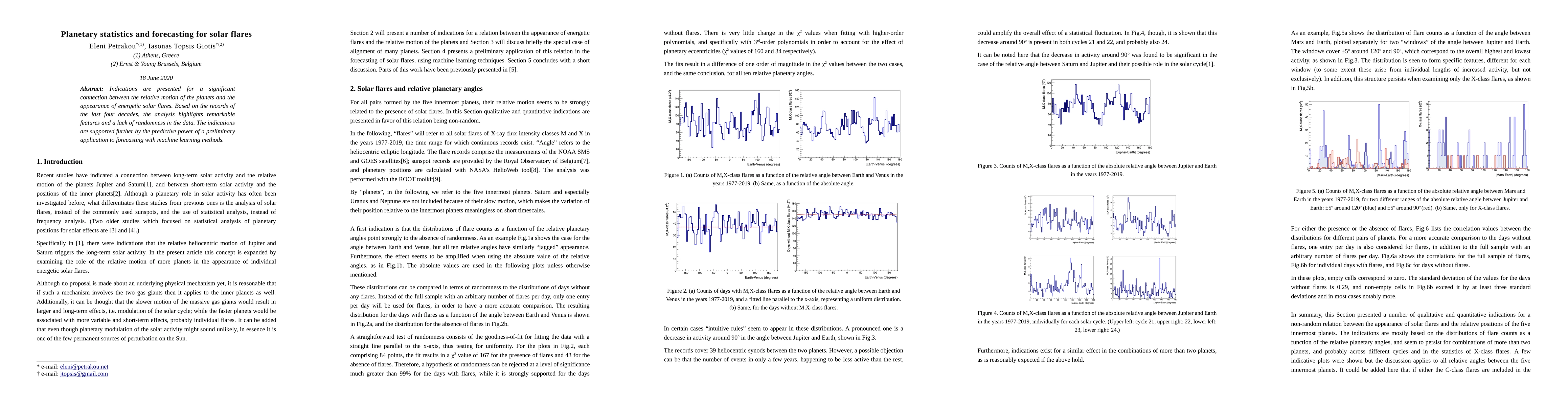 Indications are presented for a significant connection between the relative motion of the planets and the appearance of energetic solar flares. Based on the records of the last four decades, the analysis highlights remarkable features and a lack of randomness in the data. The indications are supported further by the predictive power of a preliminary application to forecasting with machine learning methods.
