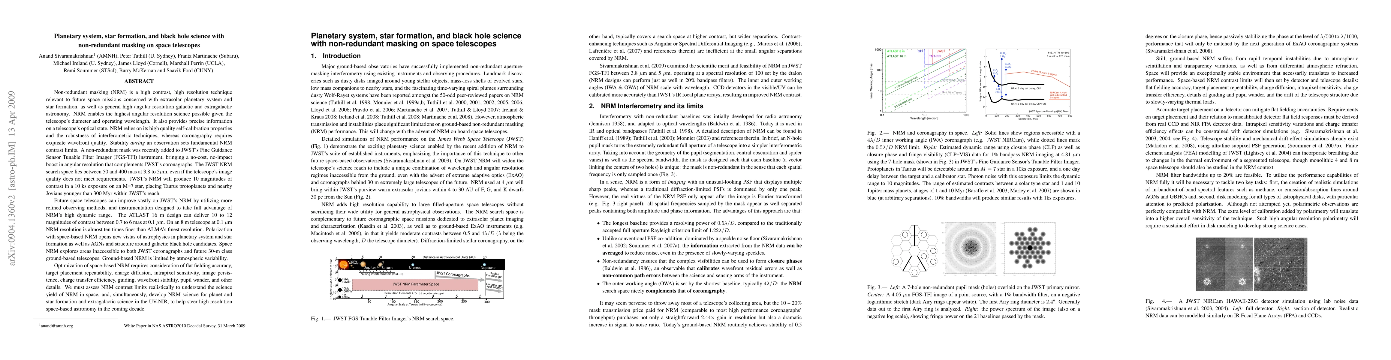 This paper discusses the application of non-redundant masking (NRM) for high-contrast, high-resolution space telescope observations, focusing on extrasolar planetary systems, star formation, and galactic/extragalactic astronomy. It emphasizes the need for realistic assessments of NRM's contrast limits to maximize its scientific potential in future space missions.