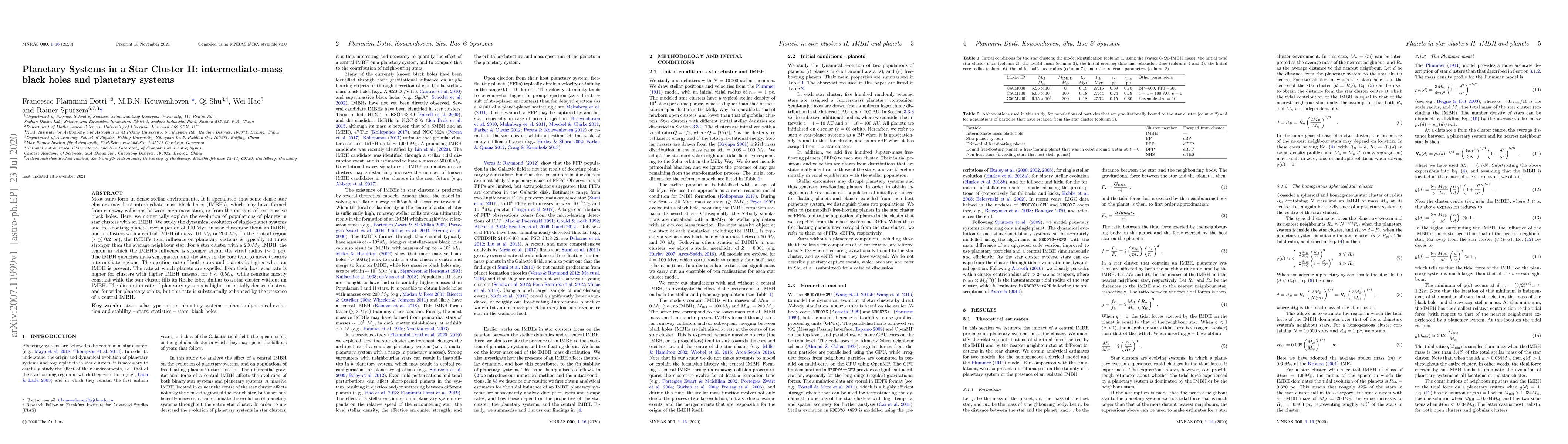 Most stars form in dense stellar environments. It is speculated that some dense star clusters may host intermediate-mass black holes (IMBHs), which may have formed from runaway collisions between high-mass stars, or from the mergers of less massive black holes. Here, we numerically explore the evolution of populations of planets in star clusters with an IMBH. We study the dynamical evolution of single-planet systems and free-floating planets, over a period of 100~Myr, in star clusters without an IMBH, and in clusters with a central IMBH of mass $100~M_\odot$ or $200~M_\odot$. In the central region ($r\lesssim 0.2$~pc), the IMBH's tidal influence on planetary systems is typically 10~times stronger than the average neighbour star. For a star cluster with a $200M_\odot$ IMBH, the region in which the IMBH's influence is stronger within the virial radius ($\sim 1$~pc). The IMBH quenches mass segregation, and the stars in the core tend to move towards intermediate regions. The ejection rate of both stars and planets is higher when an IMBH is present. The rate at which planets are expelled from their host star rate is higher for clusters with higher IMBH masses, for $t<0.5 t_{rh}$, while remains mostly constant while the star cluster fills its Roche lobe, similar to a star cluster without an IMBH. The disruption rate of planetary systems is higher in initially denser clusters, and for wider planetary orbits, but this rate is substantially enhanced by the presence of a central IMBH.