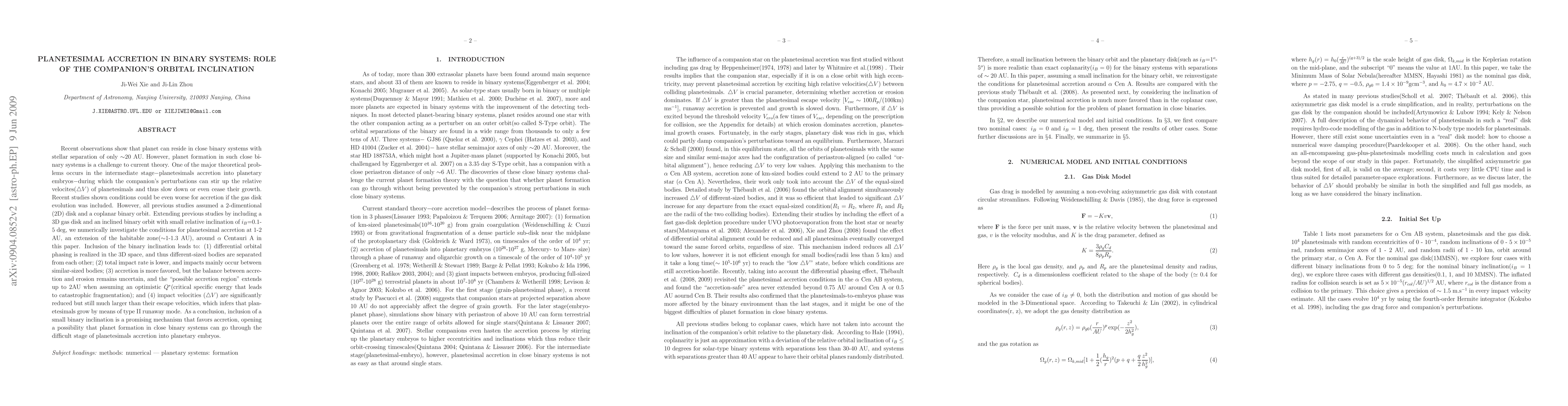 This paper explores the impact of a small binary orbital inclination on planetesimal accretion in close binary systems, finding that it can enhance accretion while reducing impact velocities, thus potentially facilitating planet formation in such systems. The study suggests that the inclusion of a 3D gas disk and an inclined binary orbit may resolve some theoretical challenges in planet formation near binary stars.