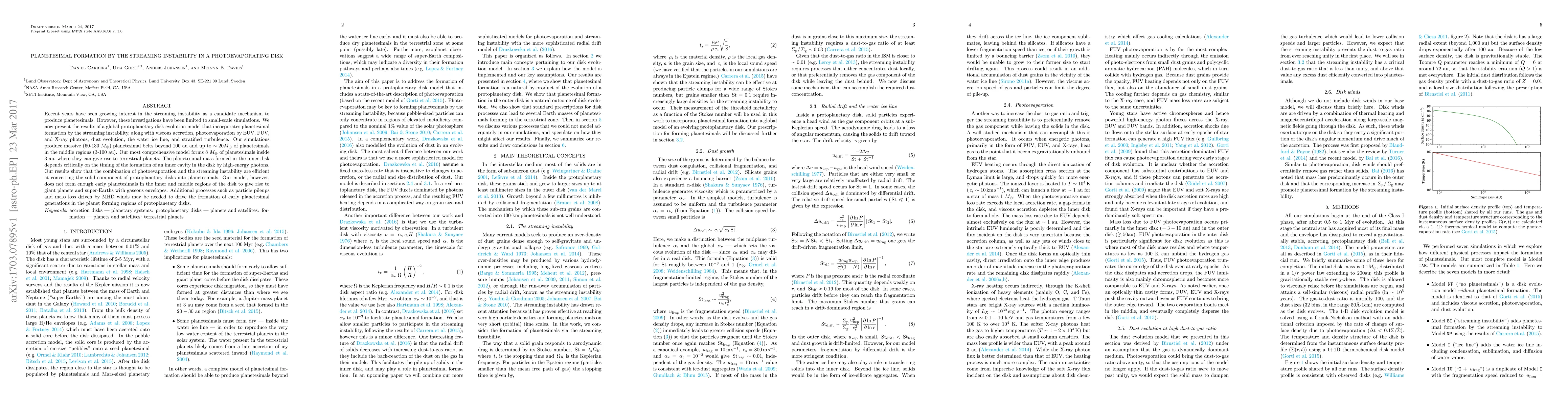 This paper explores planetesimal formation via the streaming instability in a photoevaporating protoplanetary disk, showing that the mechanism can produce substantial planetesimal belts, especially beyond 100 au. However, it finds insufficient early planetesimal formation in inner regions to account for the formation of giant planets and super-Earths, suggesting additional processes may be needed.