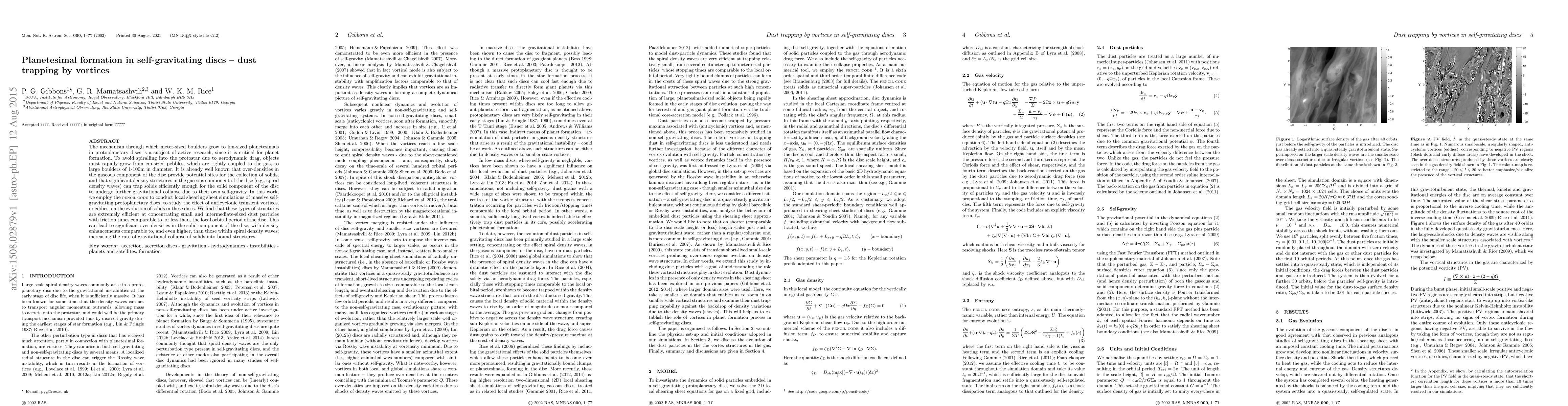 This study explores how anticyclonic vortices in self-gravitating protoplanetary discs can trap dust particles and facilitate the formation of planetesimals. Using simulations, the research finds that these vortices efficiently concentrate small dust particles, leading to significant over-densities and enhanced gravitational collapse, which accelerates the growth of planetesimals.