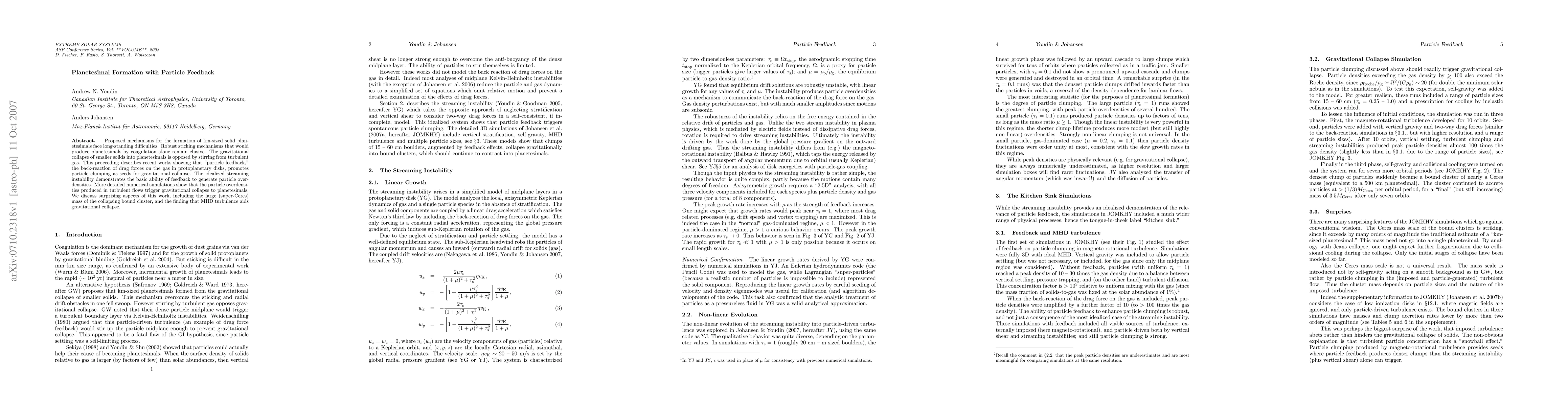 Recent research suggests that particle feedback in protoplanetary disks can trigger gravitational collapse to form km-sized solid planetesimals. This mechanism overcomes the challenges of coagulation alone and produces larger mass than previously thought.