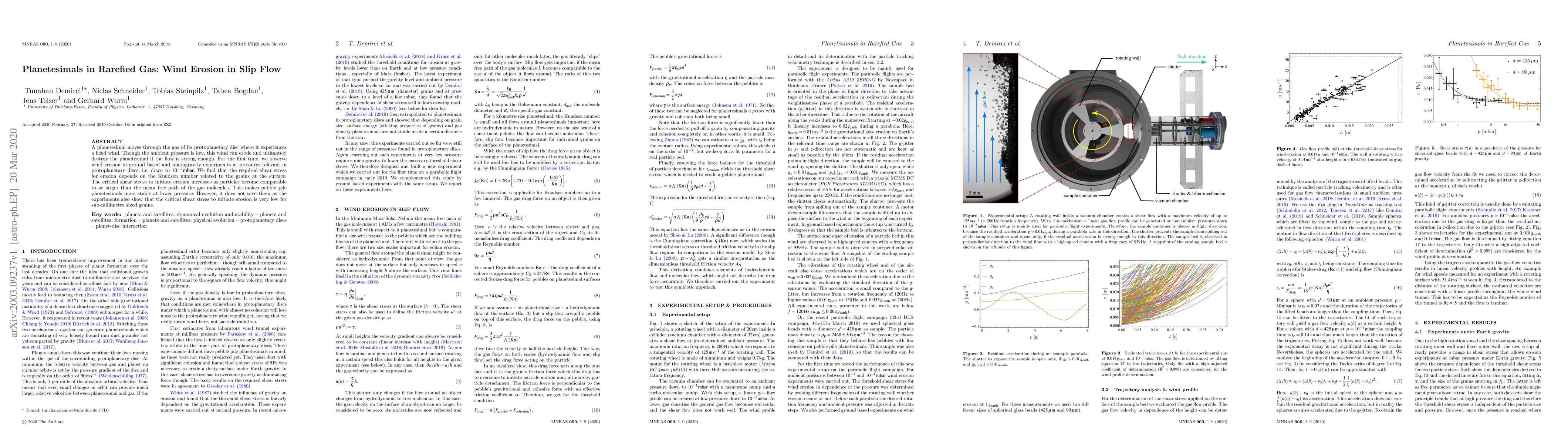 This study investigates wind erosion of planetesimals in low-pressure protoplanetary disc environments, revealing that erosion depends on the Knudsen number. The experiments show that pebble pile planetesimals are more stable at lower pressures, but sub-millimetre grains still face low critical shear stress for erosion.