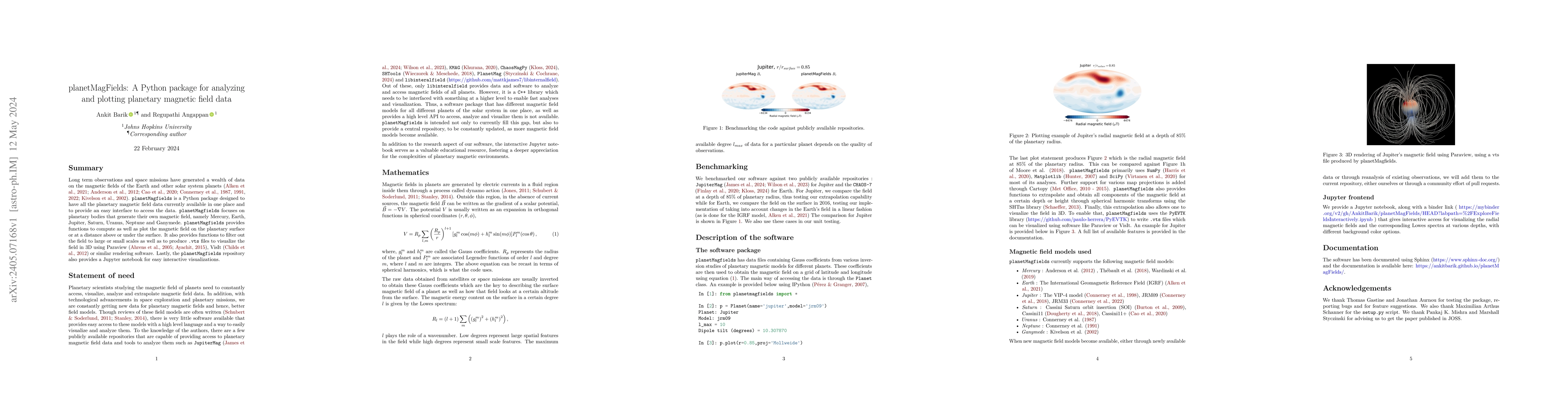 The planetMagFields Python package centralizes and simplifies access to data on the magnetic fields of Earth, Mercury, Jupiter, Saturn, Uranus, Neptune, and Ganymede, offering tools for computation, plotting, filtering, and 3D visualization through Paraview or similar software. It also includes Jupyter notebooks for interactive data exploration.