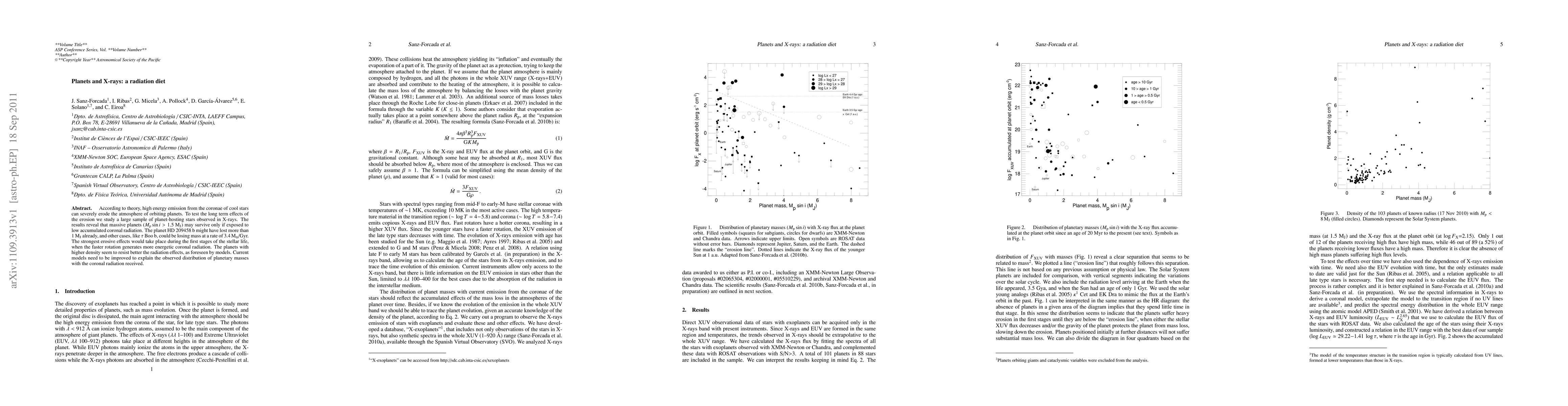 According to theory, high energy emission from the coronae of cool stars can severely erode the atmosphere of orbiting planets. To test the long term effects of the erosion we study a large sample of planet-hosting stars observed in X-rays. The results reveal that massive planets (Mp sin i > 1.5 Mj) may survive only if exposed to low accumulated coronal radiation. The planet HD 209458 b might have lost more than 1 Mj already, and other cases, like tau Boo b, could be losing mass at a rate of 3.4 Earth masses per Gyr. The strongest erosive effects would take place during the first stages of the stellar life, when the faster rotation generates more energetic coronal radiation. The planets with higher density seem to resist better the radiation effects, as foreseen by models. Current models need to be improved to explain the observed distribution of planetary masses with the coronal radiation received.