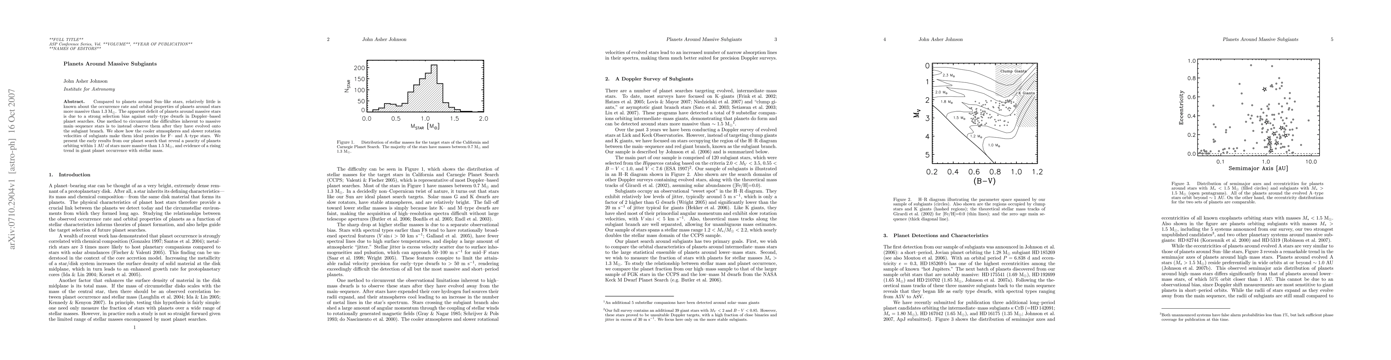 Compared to planets around Sun-like stars, relatively little is known about the occurrence rate and orbital properties of planets around stars more massive than 1.3 Msun. The apparent deficit of planets around massive stars is due to a strong selection bias against early-type dwarfs in Doppler-based planet searches. One method to circumvent the difficulties inherent to massive main-sequence stars is to instead observe them after they have evolved onto the subgiant branch. We show how the cooler atmospheres and slower rotation velocities of subgiants make them ideal proxies for F- and A-type stars. We present the early results from our planet search that reveal a paucity of planets orbiting within 1 AU of stars more massive than 1.5 Msun, and evidence of a rising trend in giant planet occurrence with stellar mass.