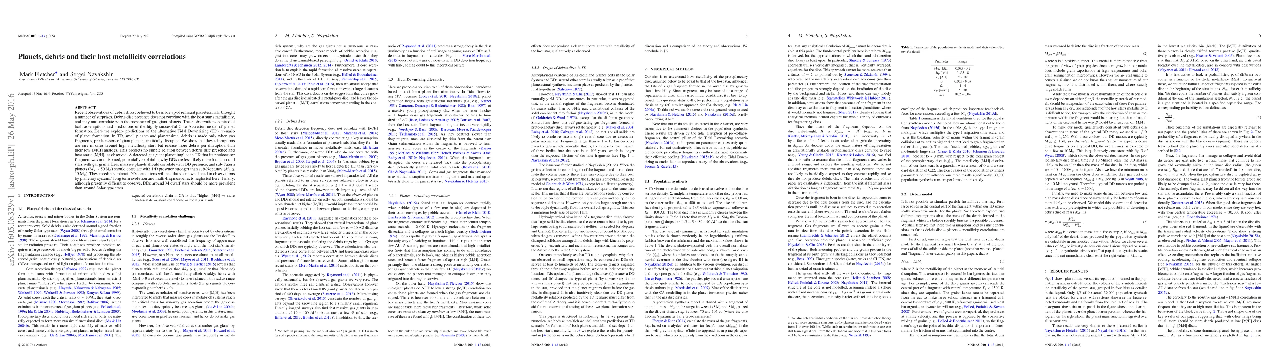 This paper explores the Tidal Downsizing (TD) model of planet formation, which posits that debris discs form from the tidal disruption of gas fragments, explaining the lack of correlation between debris discs and host star metallicity. It predicts that debris discs are less likely around stars with gas giant planets due to the absence of disrupted fragments.