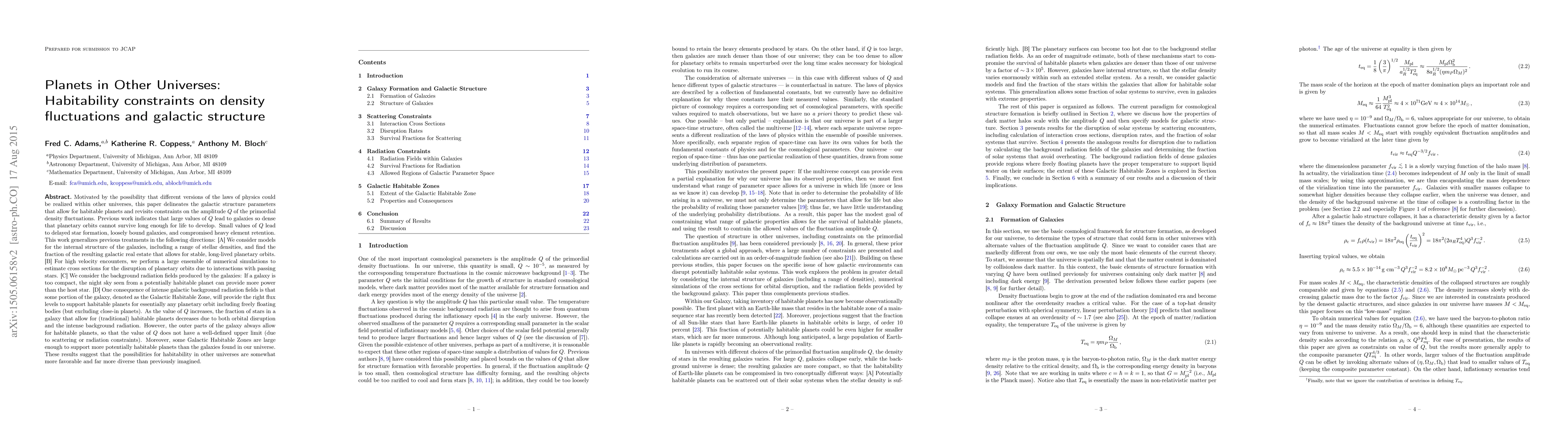 This paper explores galactic parameters that enable habitable planets in alternate universes, analyzing how density fluctuations affect planetary stability and star formation. It finds that while high density fluctuations can disrupt orbits, the outer regions of galaxies always allow for habitability, suggesting greater potential for life in other universes.