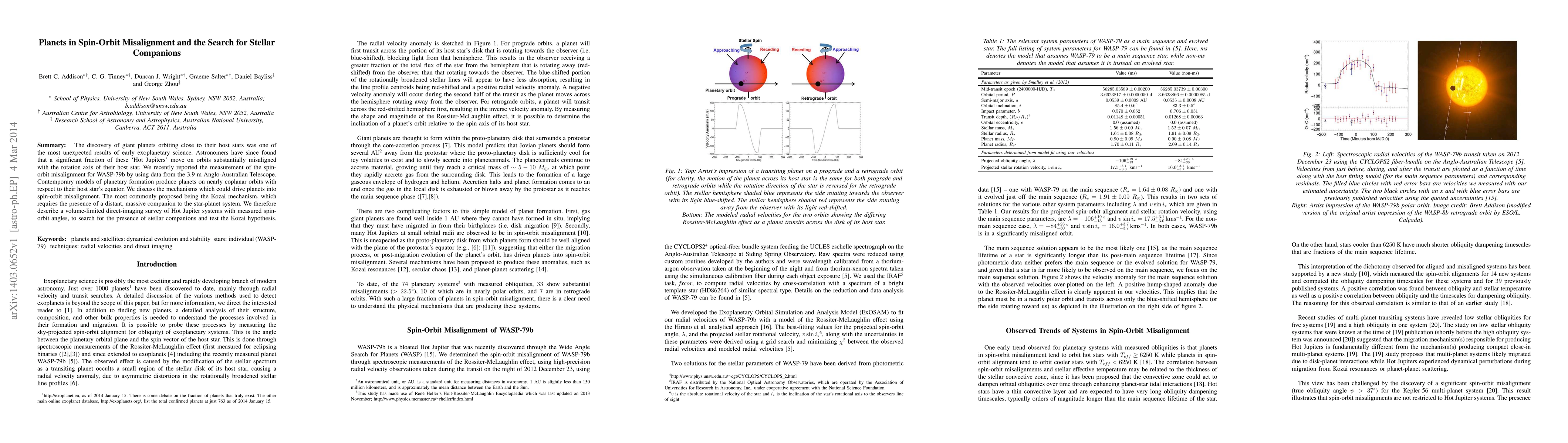 The discovery of giant planets orbiting close to their host stars was one of the most unexpected results of early exoplanetary science. Astronomers have since found that a significant fraction of these 'Hot Jupiters' move on orbits substantially misaligned with the rotation axis of their host star. We recently reported the measurement of the spin-orbit misalignment for WASP-79b by using data from the 3.9 m Anglo-Australian Telescope. Contemporary models of planetary formation produce planets on nearly coplanar orbits with respect to their host star's equator. We discuss the mechanisms which could drive planets into spin-orbit misalignment. The most commonly proposed being the Kozai mechanism, which requires the presence of a distant, massive companion to the star-planet system. We therefore describe a volume-limited direct-imaging survey of Hot Jupiter systems with measured spin-orbit angles, to search for the presence of stellar companions and test the Kozai hypothesis.
