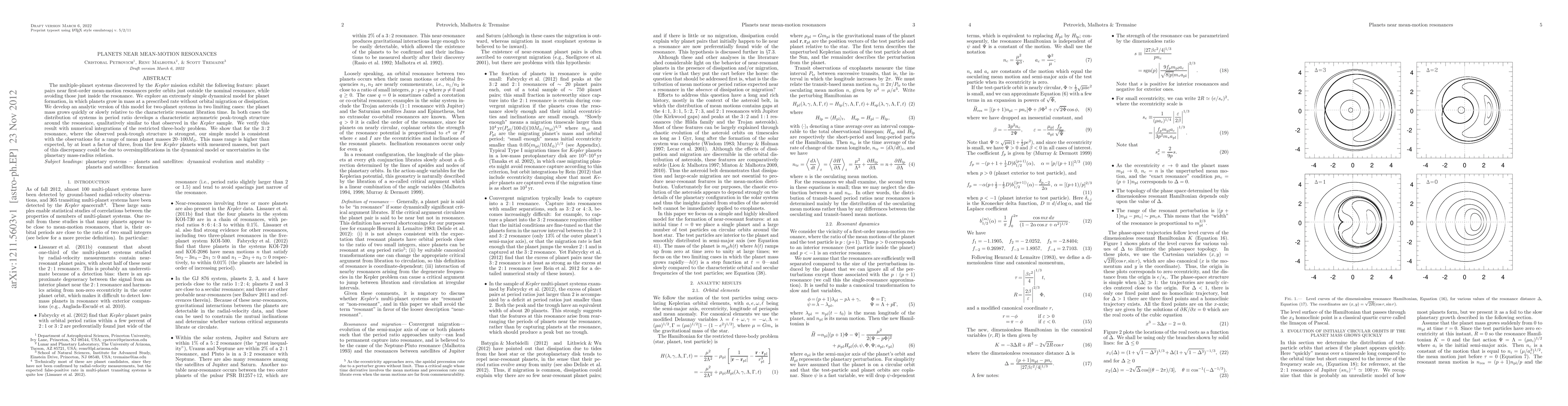 The multiple-planet systems discovered by the Kepler mission exhibit the following feature: planet pairs near first-order mean-motion resonances prefer orbits just outside the nominal resonance, while avoiding those just inside the resonance. We explore an extremely simple dynamical model for planet formation, in which planets grow in mass at a prescribed rate without orbital migration or dissipation. We develop an analytic version of this model for two-planet systems in two limiting cases: the planet mass grows quickly or slowly relative to the characteristic resonant libration time. In both cases the distribution of systems in period ratio develops a characteristic asymmetric peak-trough structure around the resonance, qualitatively similar to that observed in the Kepler sample. We verify this result with numerical integrations of the restricted three-body problem. We show that for the 3:2 resonance, where the observed peak-trough structure is strongest, our simple model is consistent with the observations for a range of mean planet masses 20-100M_{\oplus}. This mass range is higher than expected, by at least a factor of three, from the few Kepler planets with measured masses, but part of this discrepancy could be due to oversimplifications in the dynamical model or uncertainties in the planetary mass-radius relation.