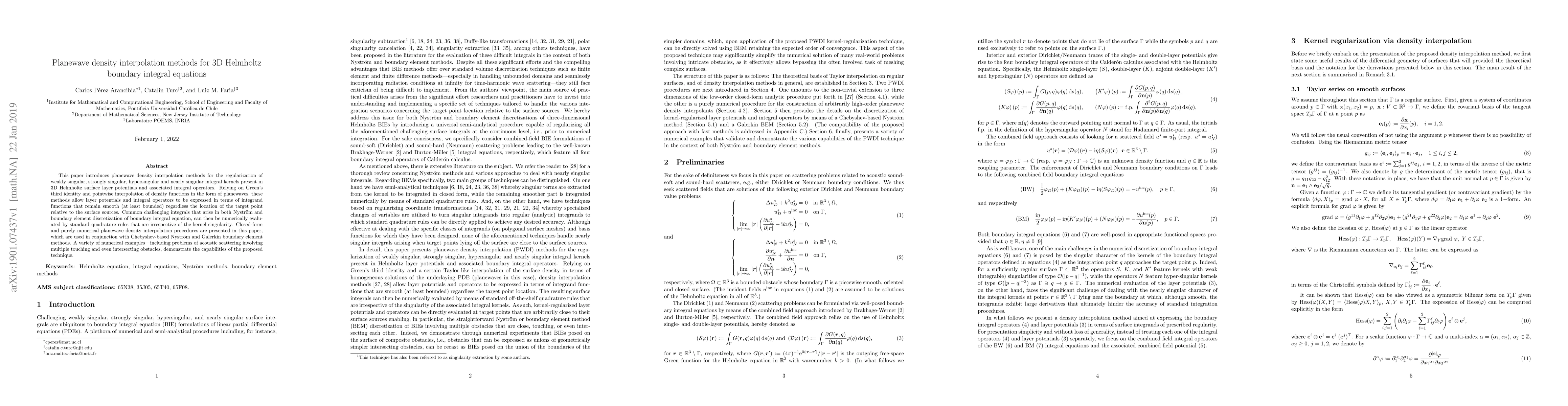 This paper proposes planewave density interpolation methods to regularize singular integral kernels in 3D Helmholtz boundary integral equations, enabling smooth integrands for numerical evaluation. The methods are demonstrated through Chebyshev-based Nyström and Galerkin methods, validated by acoustic scattering examples involving complex geometries.