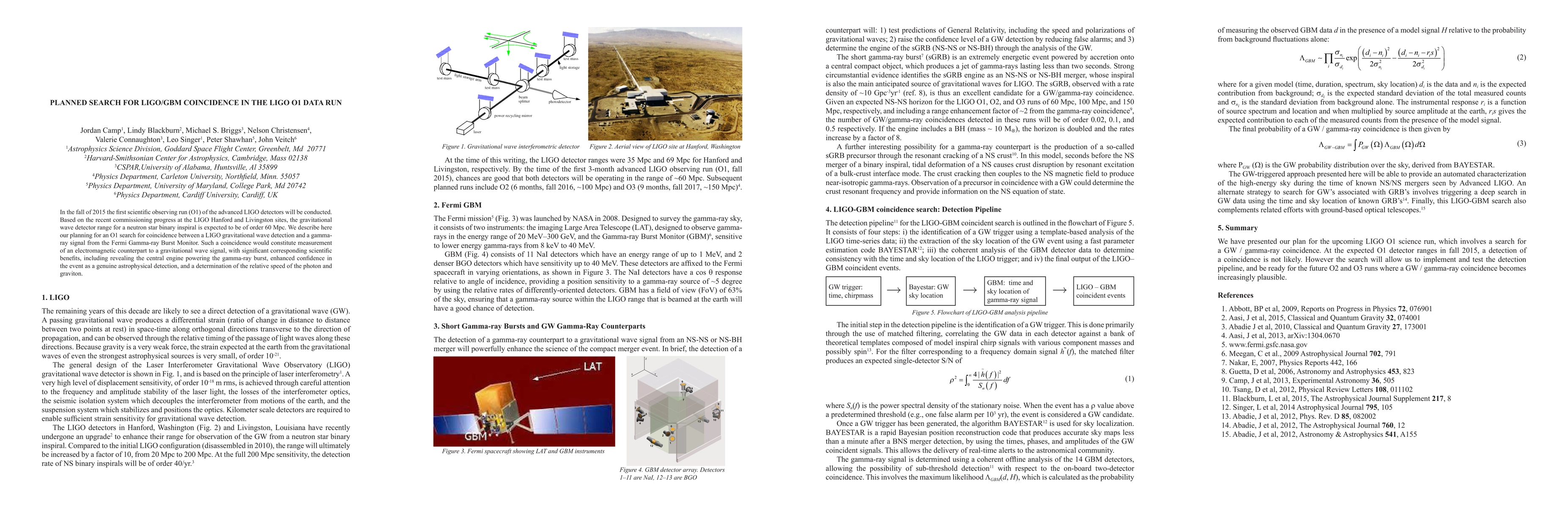 In the fall of 2015 the first scientific observing run (O1) of the advanced LIGO detectors will be conducted. Based on the recent commissioning progress at the LIGO Hanford and Livingston sites, the gravitational wave detector range for a neutron star binary inspiral is expected to be of order 60 Mpc. We describe here our planning for an O1 search for coincidence between a LIGO gravitational wave detection and a gamma-ray signal from the Fermi Gamma-ray Burst Monitor. Such a coincidence would constitute measurement of an electromagnetic counterpart to a gravitational wave signal, with significant corresponding scientific benefits, including revealing the central engine powering the gamma-ray burst, enhanced confidence in the event as a genuine astrophysical detection, and a determination of the relative speed of the photon and graviton.